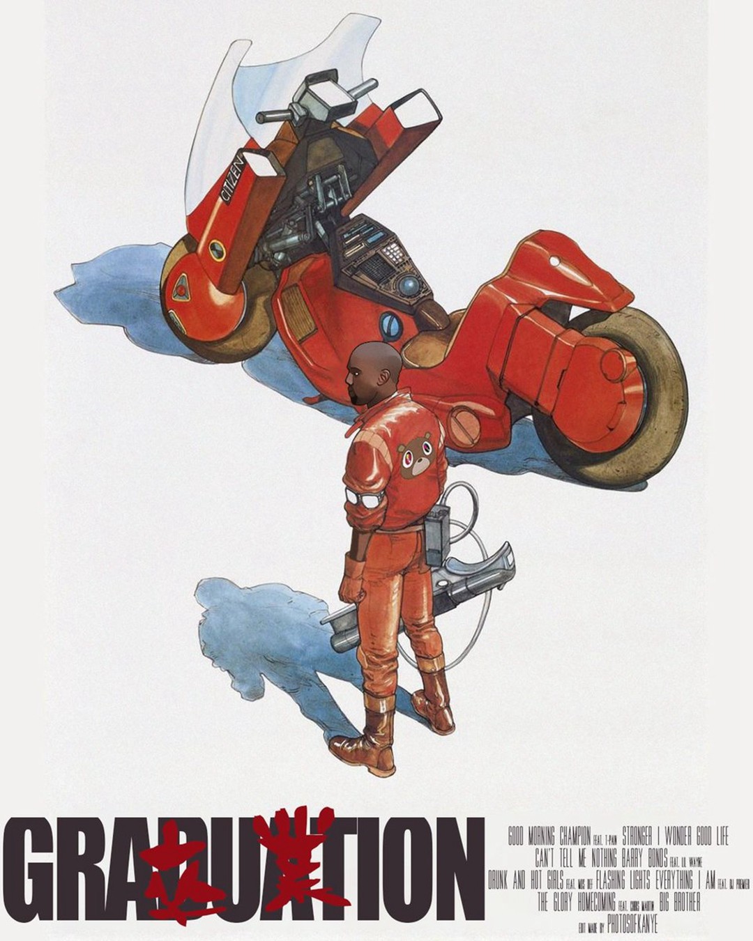 而在试听会的现场,侃爷用类似丝袜材质的面罩包住了自己的面部,再加上一身亮红色,简直就是《阿基拉》里的金田本人。