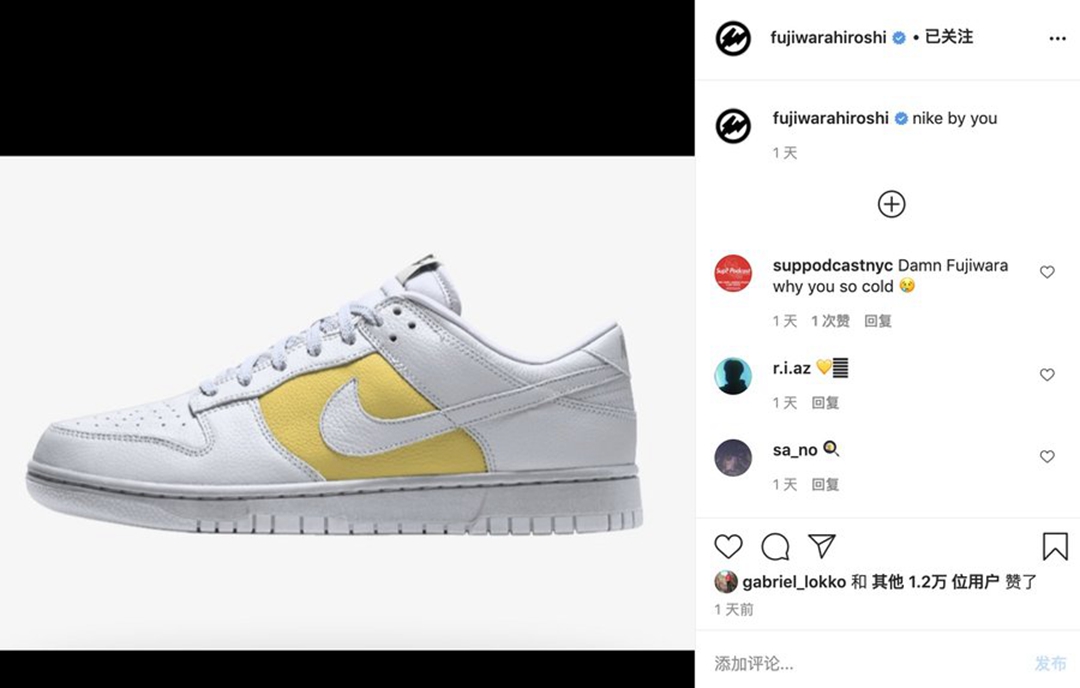 年初时,Nike 更是开启了 Dunk By You 定制选项,超高的热度也是引得了「潮流教父」藤原浩的关注,但小编还是难以忘怀当年藤原浩吐槽 NikeID 时的盛况......