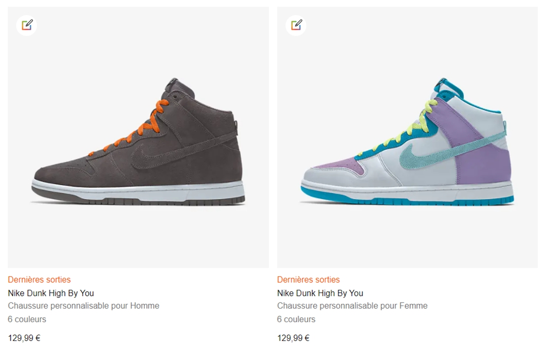 目前全新的 Nike Dunk High By You 定制项目,仅在法国上线,发售价为 €129.99 欧元,预计将在晚些时候正式于全球上线,并且想必国区这么大的市场 Nike 一定不会放弃,喜欢的朋友们耐心等待就好。