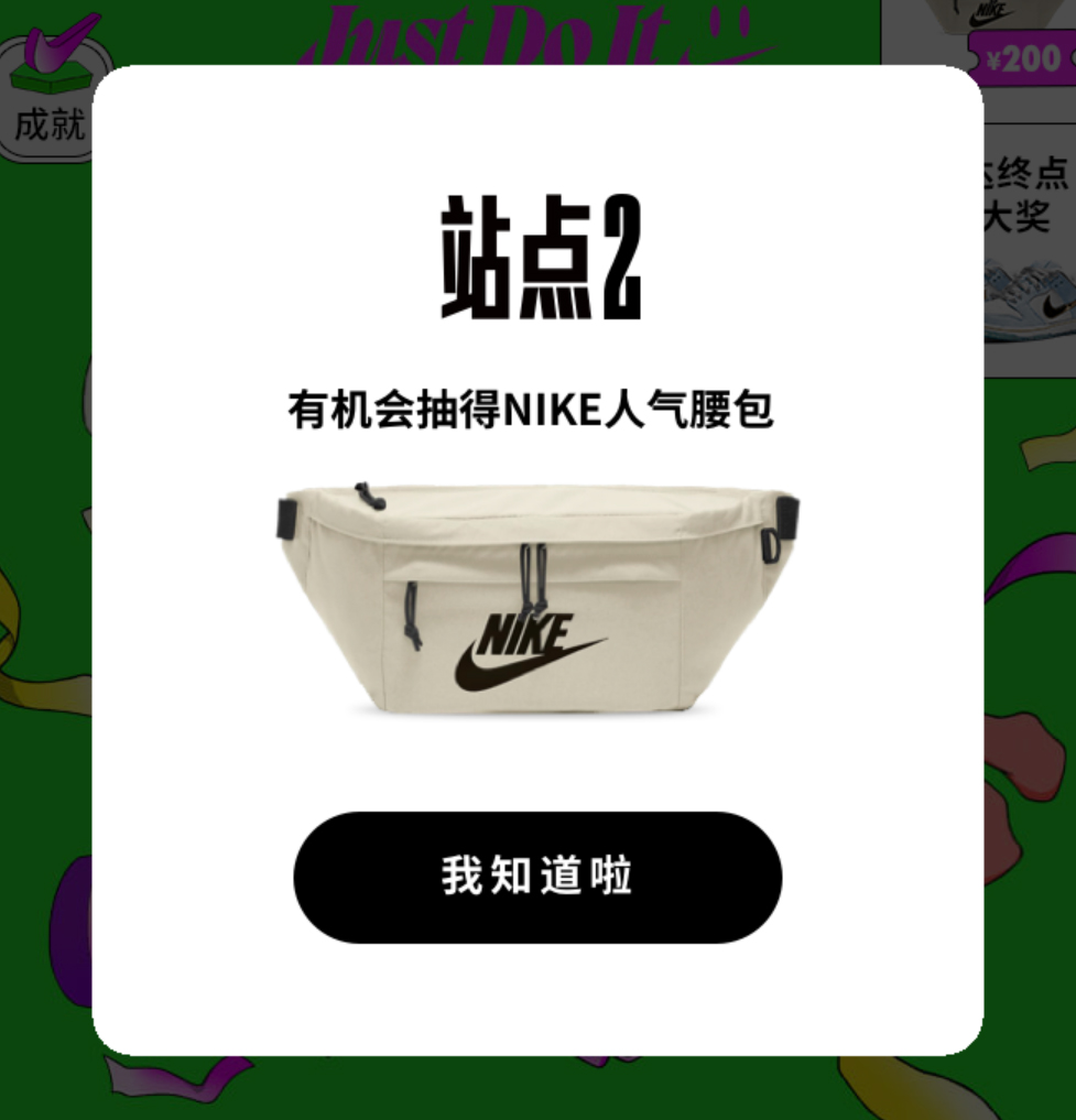 需要提醒大家的是奖池中只有 200 个 Nike 腰包和 5 双球鞋,所以中奖几率肯定不高,大家可以随缘凑个热闹!