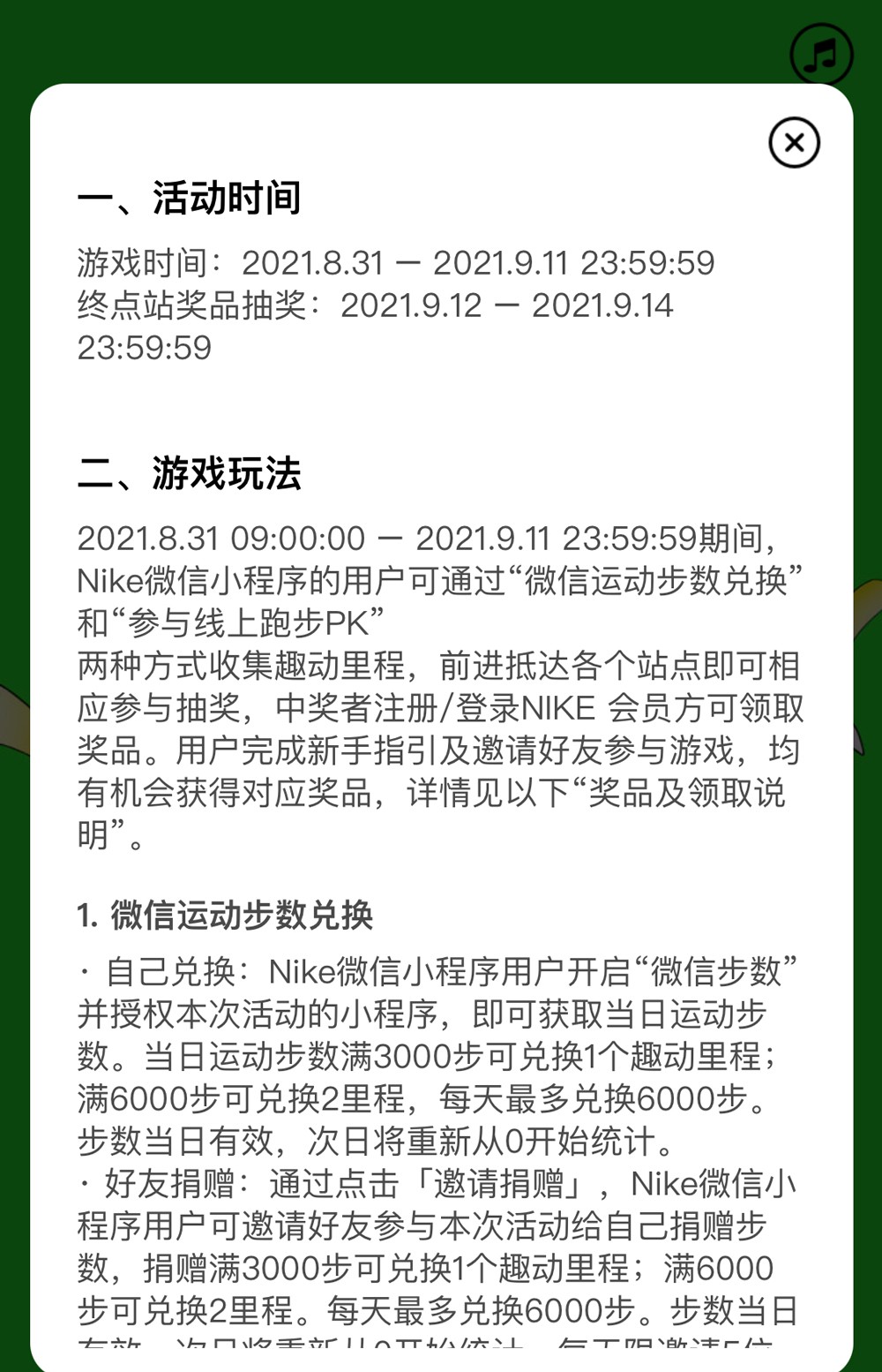 活动规则非常简单,从 8 月 31 日至 9 月 11 日期间,Nike 微信小程序的用户可通过 “微信运动步数兑换” 和 “参与线上跑步PK” 两种方式收集趣动历程。