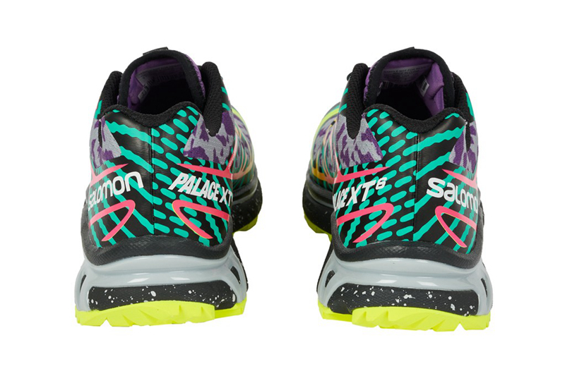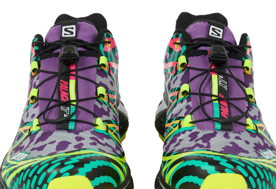 此外还采用了淡紫色鞋舌和霓虹黄鞋带孔,整体视觉效果相当夸张而又吸睛,尽显 Palace 的街头风格。