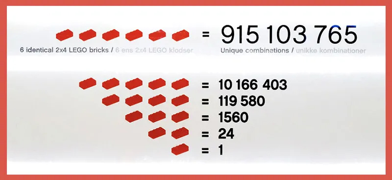 每一块都经过严格的力学测试,6 块 2x4 乐高积木,通过任意组合能拥有超过 9 亿种不同的搭建方式。