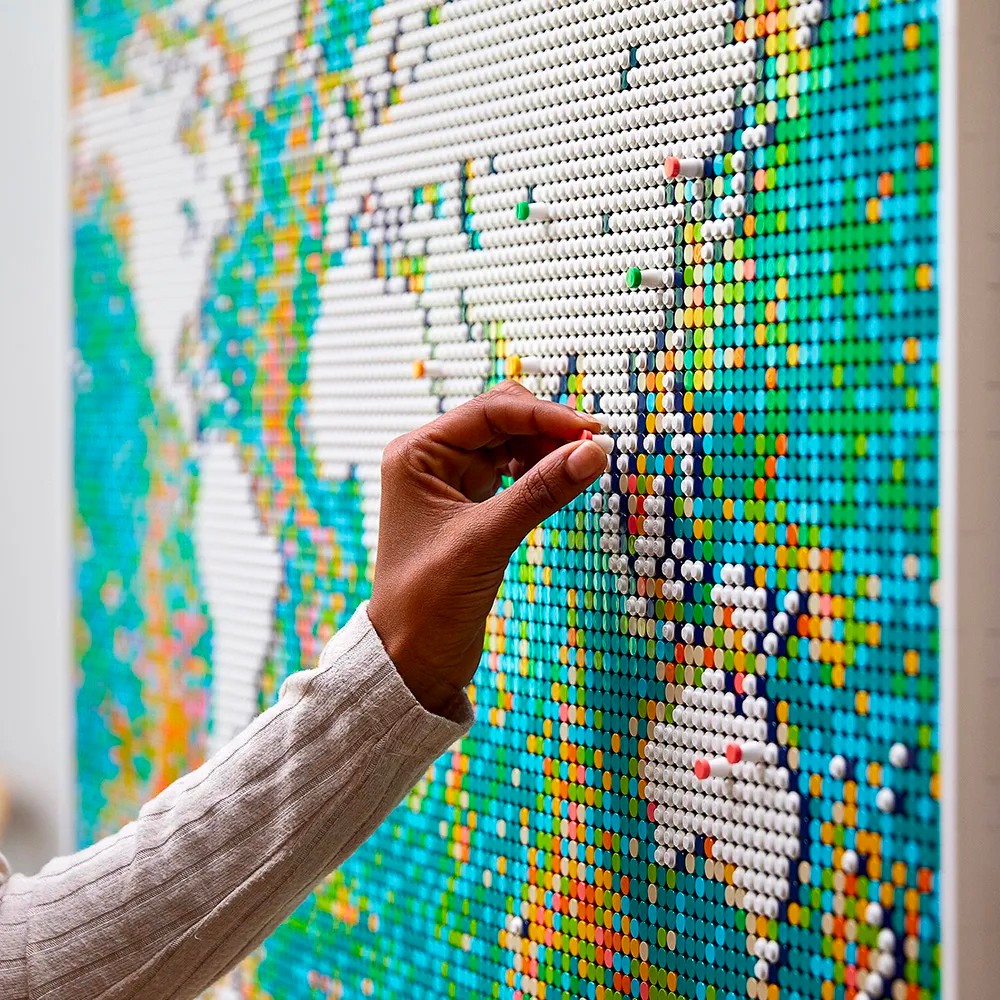 同样可被视为居家展示的绝妙藏品,乐高世界地图拥有夸张的 11695 块乐高颗粒构成,成为首个积木数量破万片的单品套装,成品更长达 1 米级别。