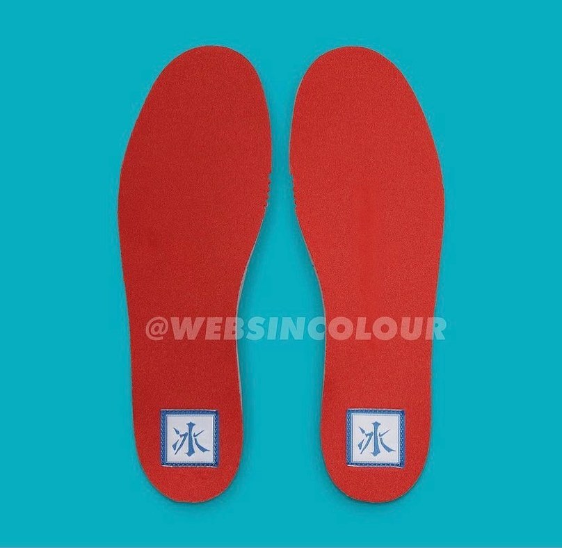白色水晶外底上点缀有雪花图案,同时鞋垫上还缝有汉字「冰」,每处细节都在呼应主题。