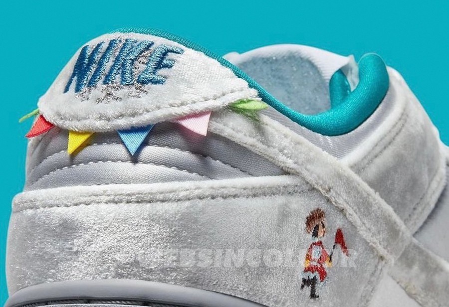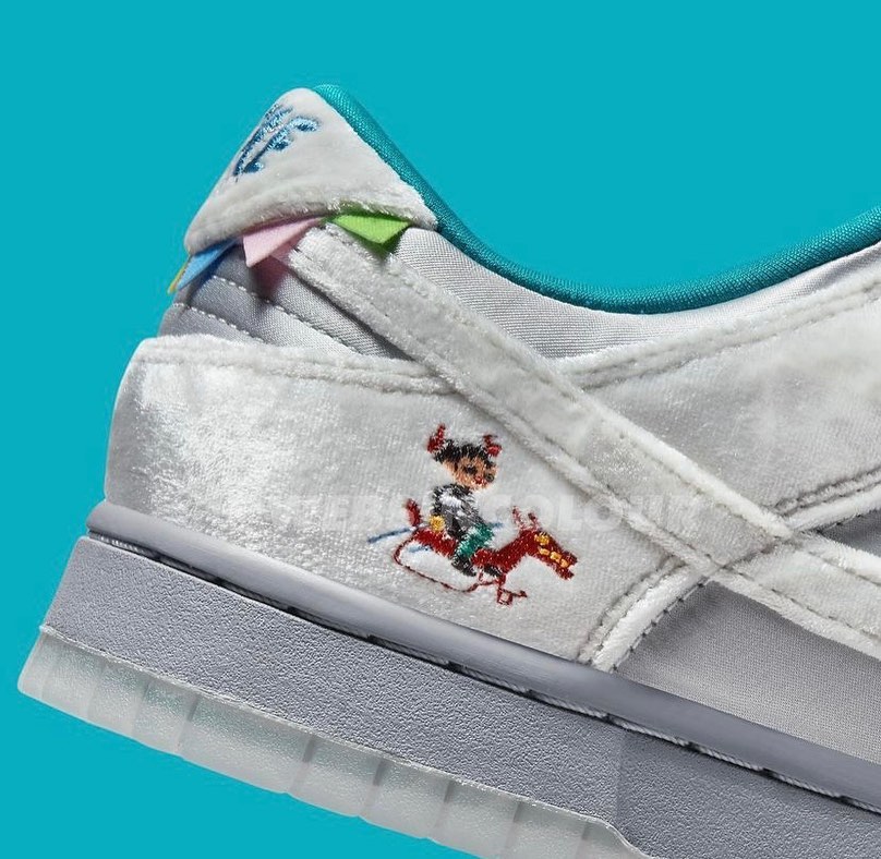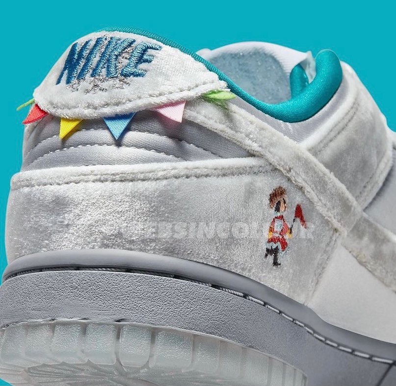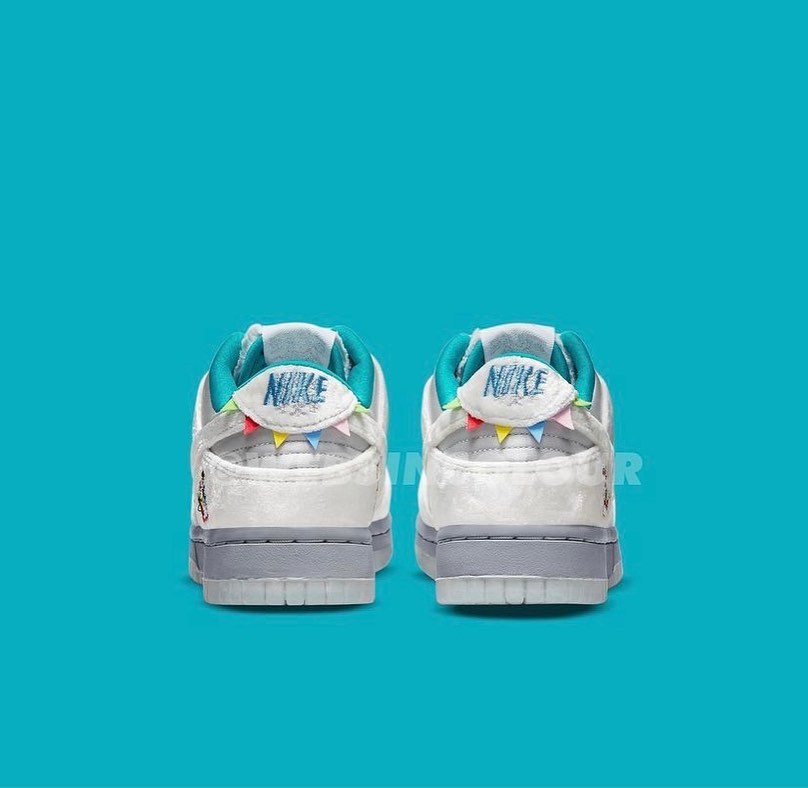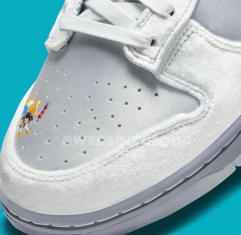 感觉整双鞋就是把情人节和冰雪奇缘两双超人气 Dunk SB Low 合二为一,以简约百搭的白灰色为主调,鞋面由丝绒、绸面打造,搭配鞋舌上的人造兔毛,增添了毛绒绒的可爱气质。