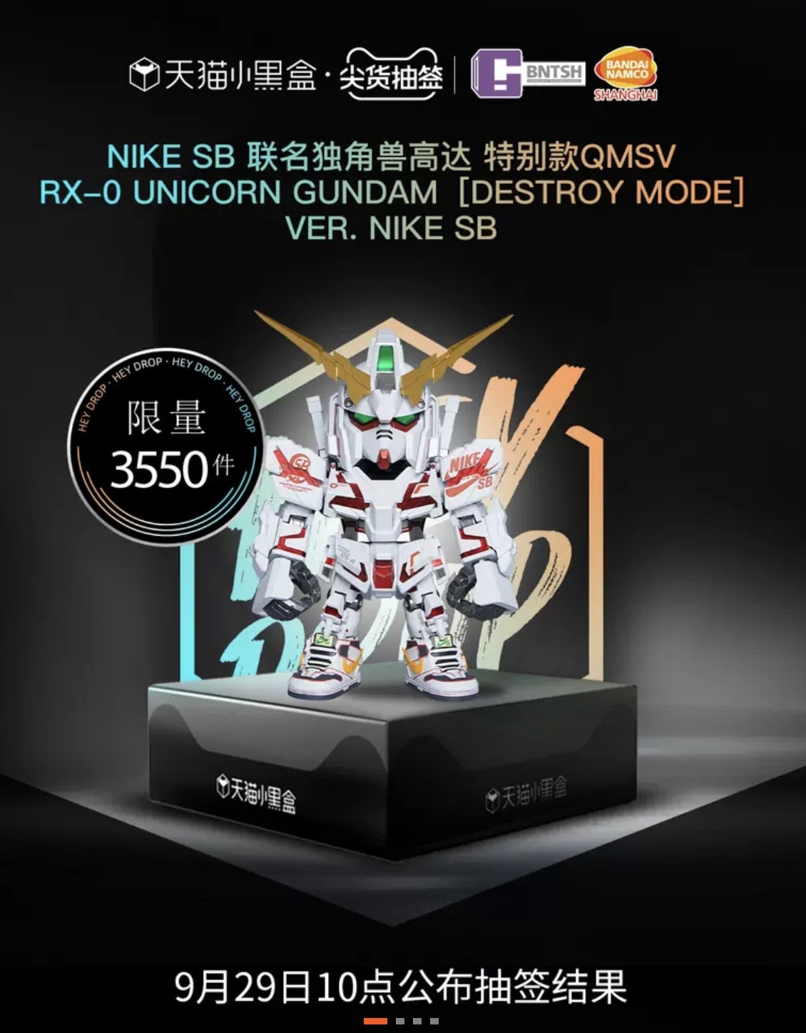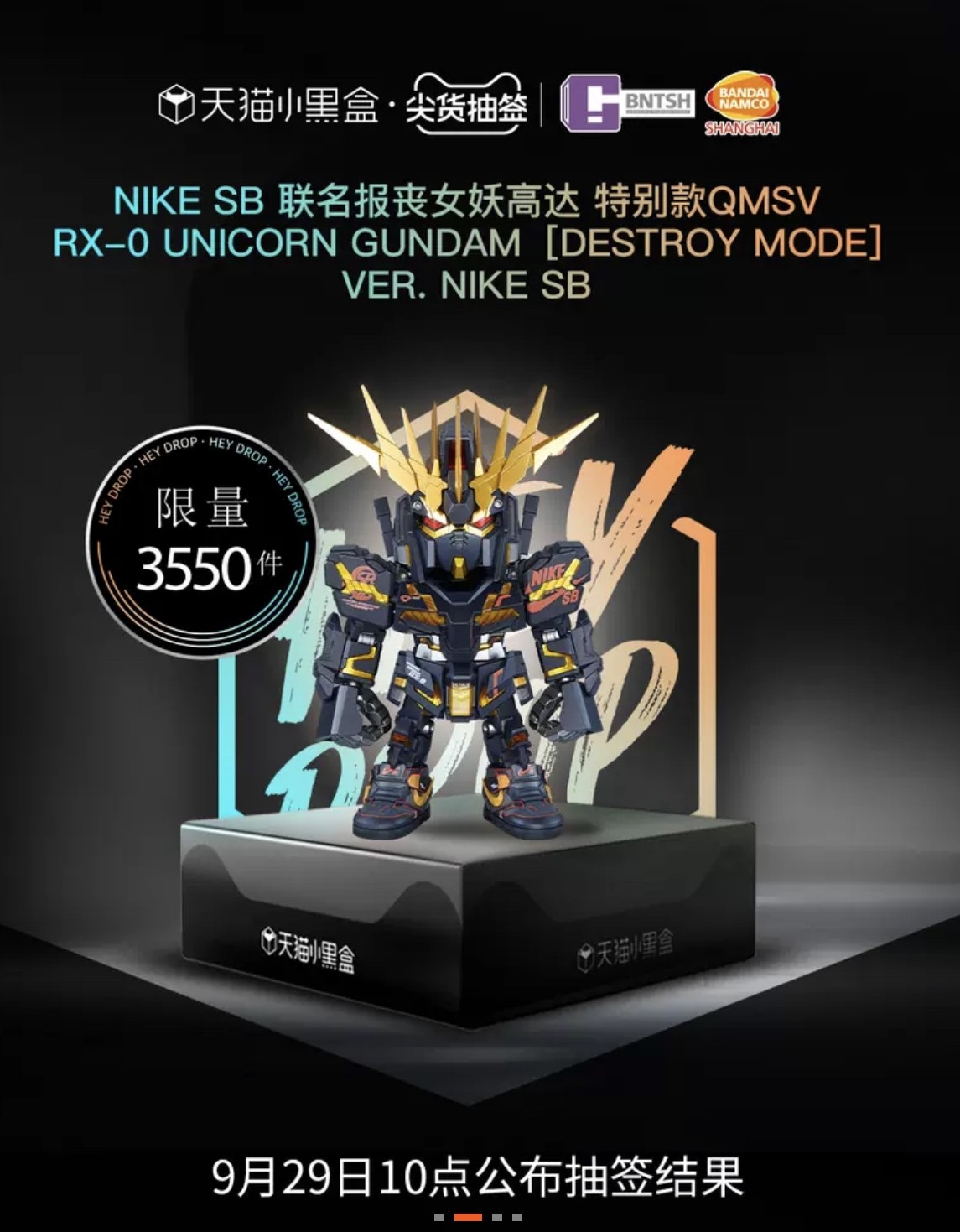 此外,为纪念 Nike SB 与「机动战士高达UC」联名鞋款发售,万代还将发售限定款高达模型,感兴趣的小伙伴不妨前往关注。