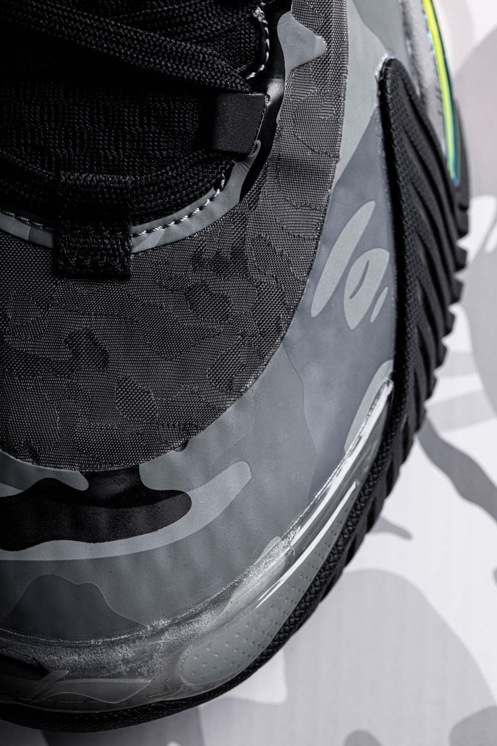 后跟以刺绣工艺展现 AAPE Logo 彰显联名身份。