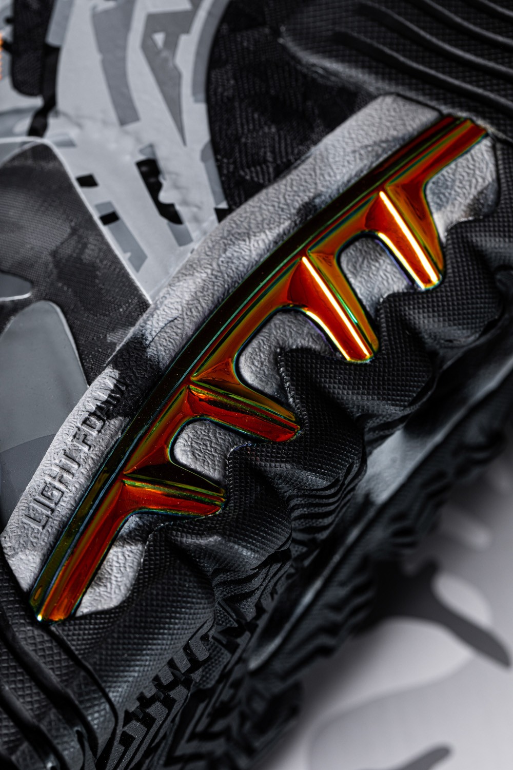 中底外侧 TPU 同样是电镀工艺,但颜色改为橙金色,随着角度变化会有变色效果。