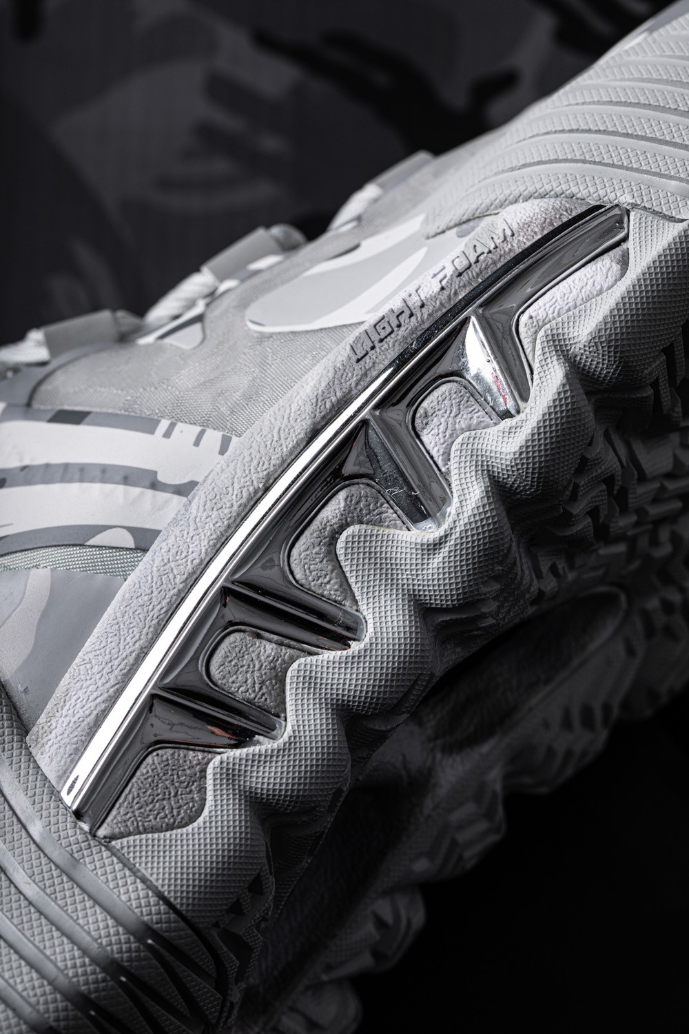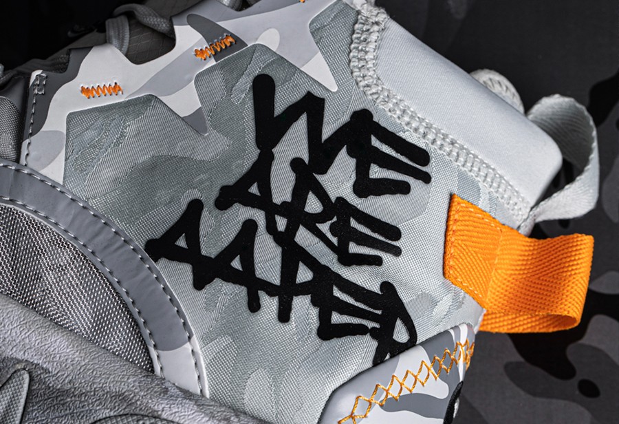 低帮款则是黑灰色为主调,同样以迷彩和文字元素装扮。