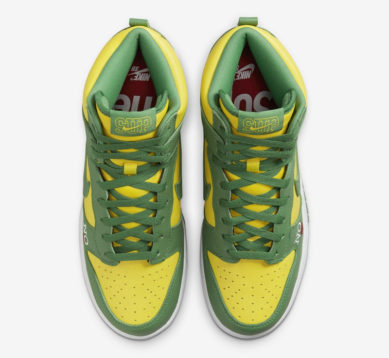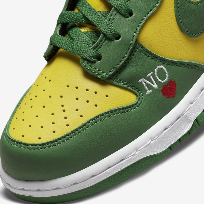 近日,这双 Supreme x Nike SB Dunk High “Brazil” 终于有完整官图释出!