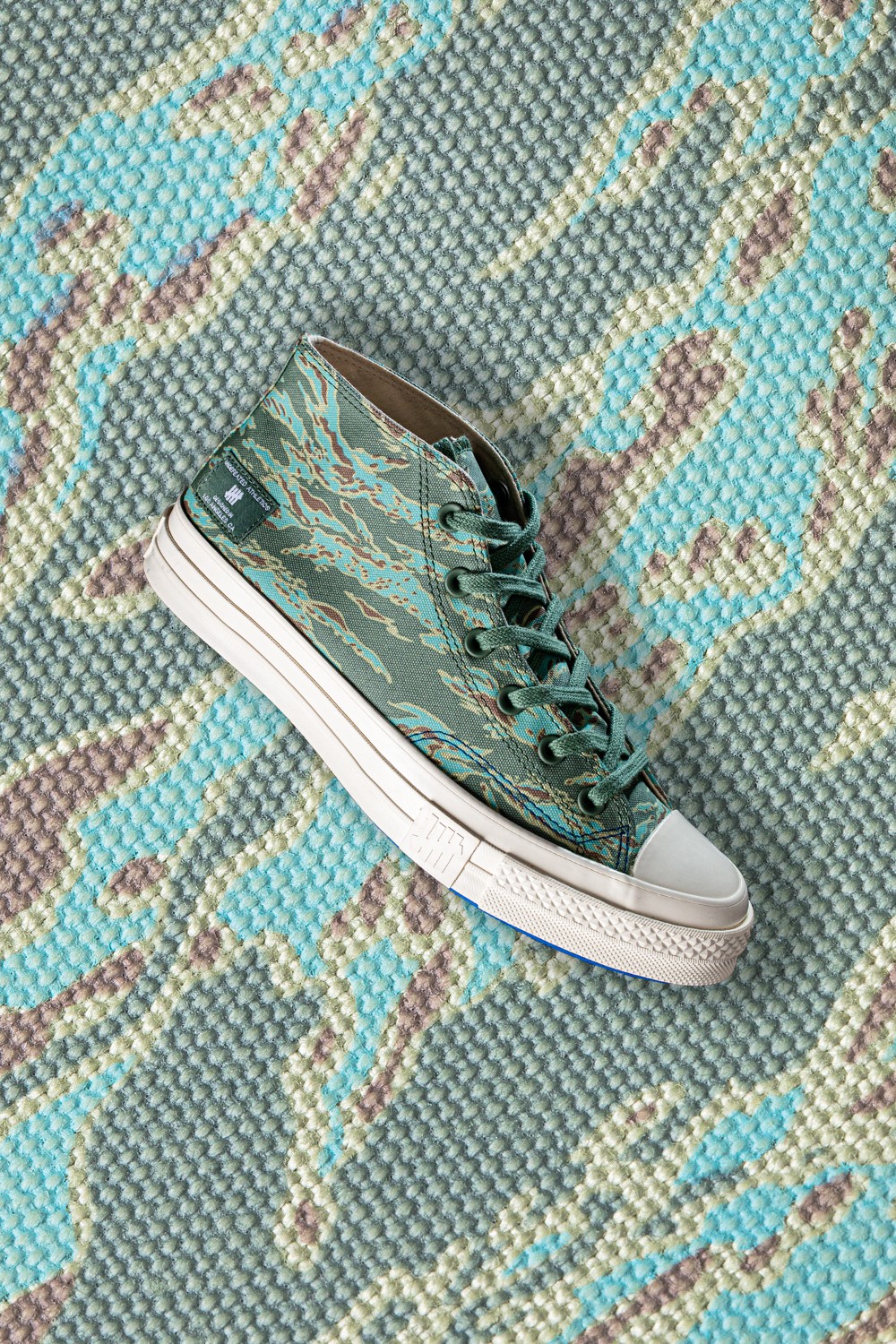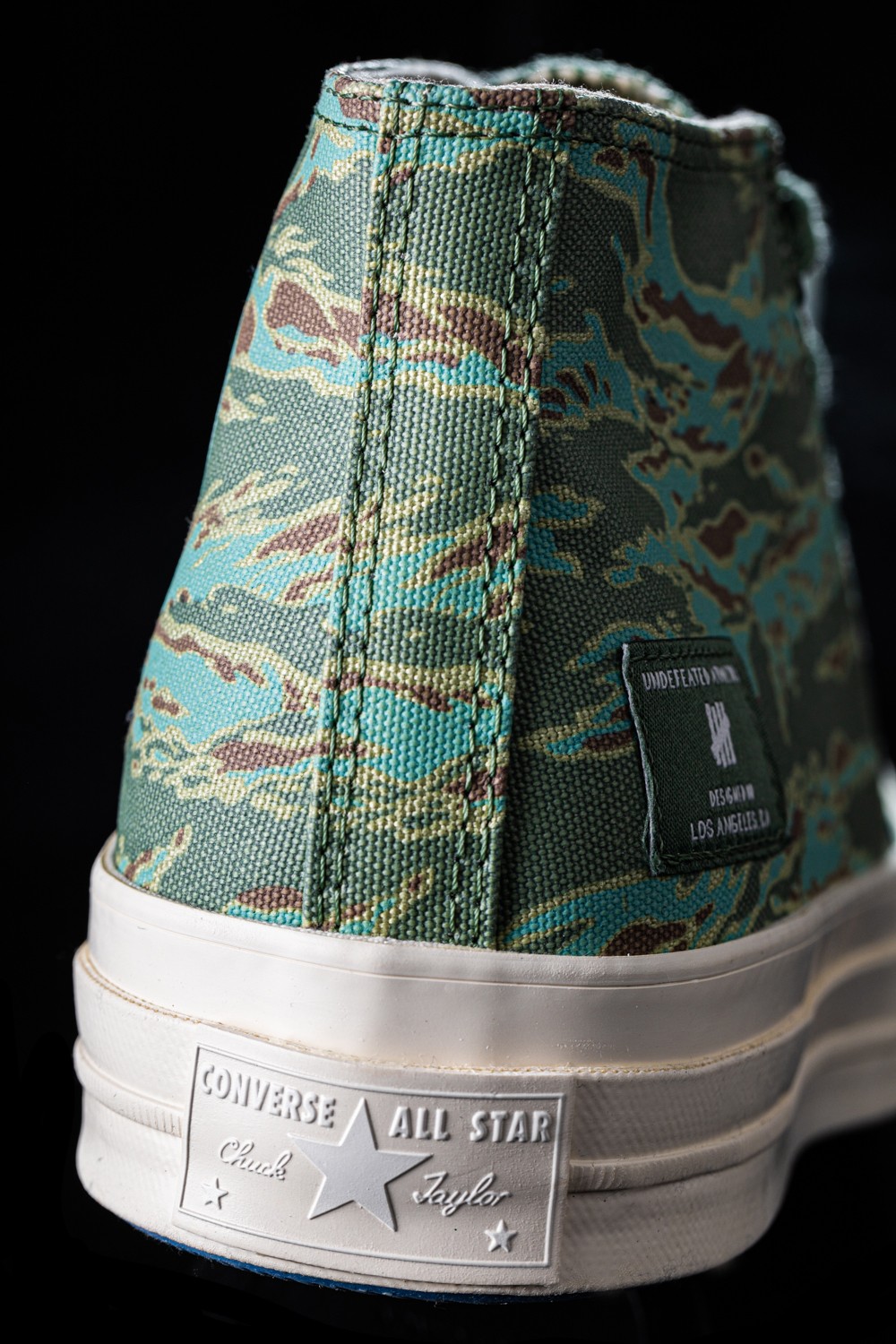 此次合作双方选择了市面上较为少见的 Half Chuck 鞋型打造,搭配 Undefeated 经典的虎纹迷彩,将街头造型与西海岸风格完美融合。