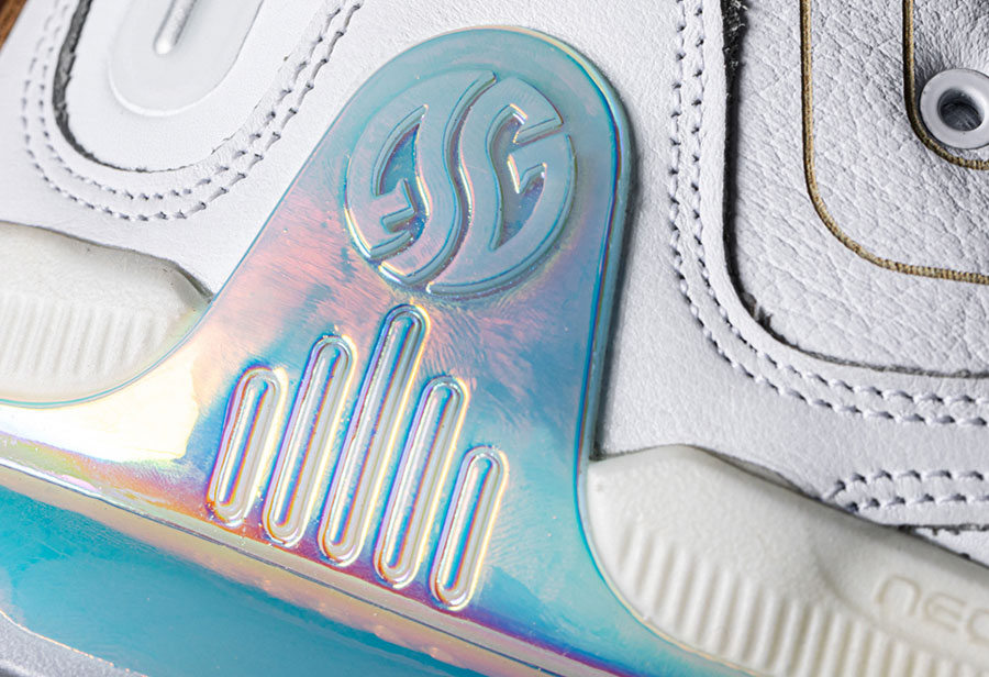 环绕整个中底的 TPU 以炫彩材质呈现,在光线照射下色彩不断变幻,带来冰块般晶莹剔透的感觉。