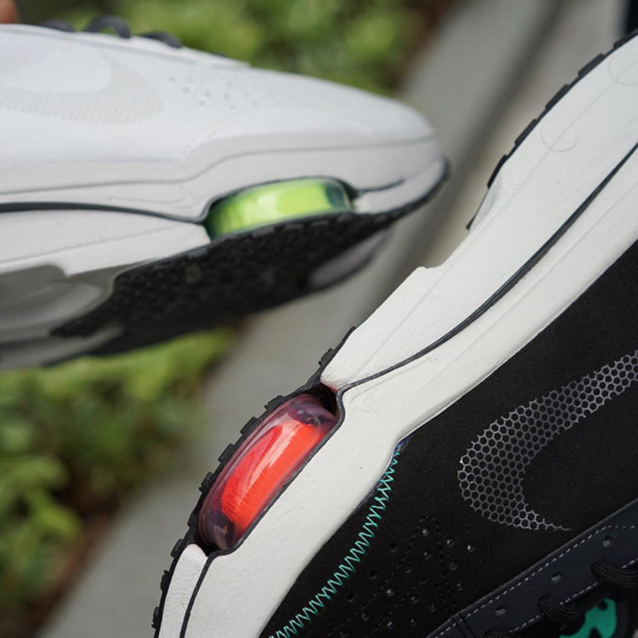 时尚复古的外观造型,出众的皮革质感,既有着酷似 sacai x Nike 的双层大底解构,前掌又搭载着两颗醒目的 Zoom Air 气垫,颜值与脚感都很能打。