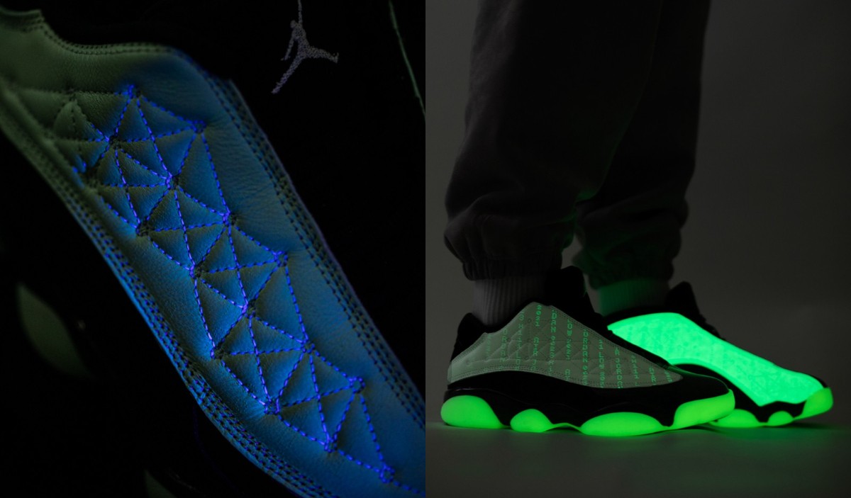 今年发售的光棍节 Air Jordan 13 Low,拥有夜光与 UA 反光两种吸睛效果。