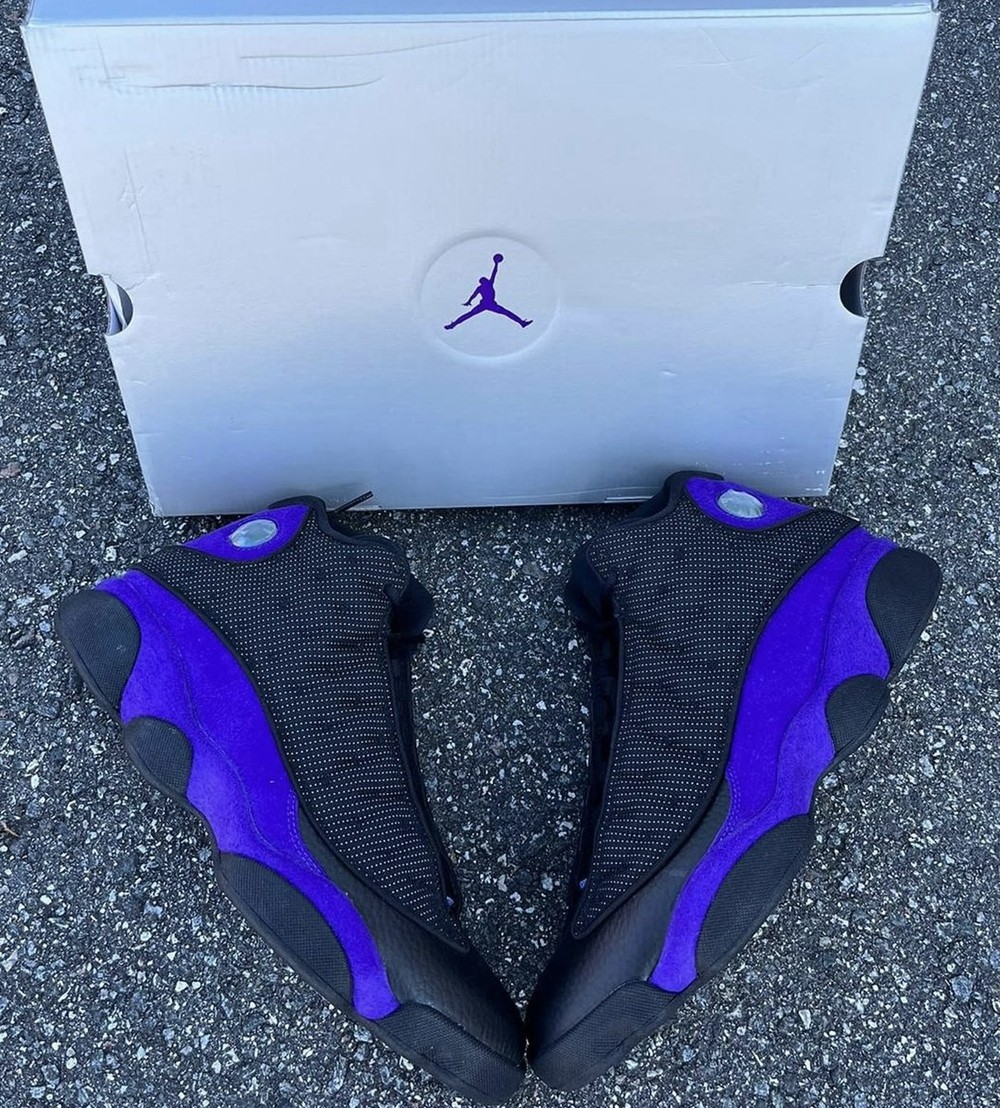 全新配色 Air Jordan 13 “Court Purple” 采用黑色皮革、磨砂皮以及网面材质覆盖。