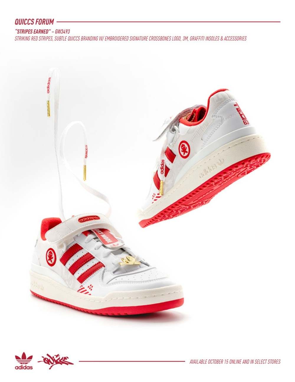 这双 Quiccs x adidas Originals Forum Low 将经典鞋型和 Quiccs 的创意融合,打造了独一无二的全新联名。