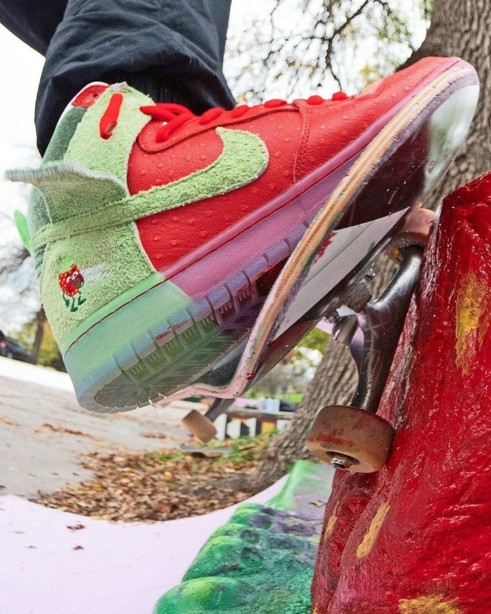 刚刚说完死亡之吻,紧接着这双 SB Dunk High “咳嗽草莓” 更是刺激,由于国内迟迟没有大规模发售,导致市价高达两万元左右。