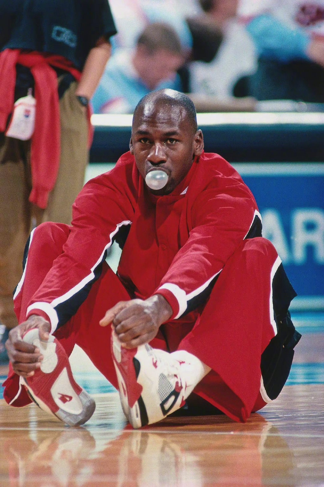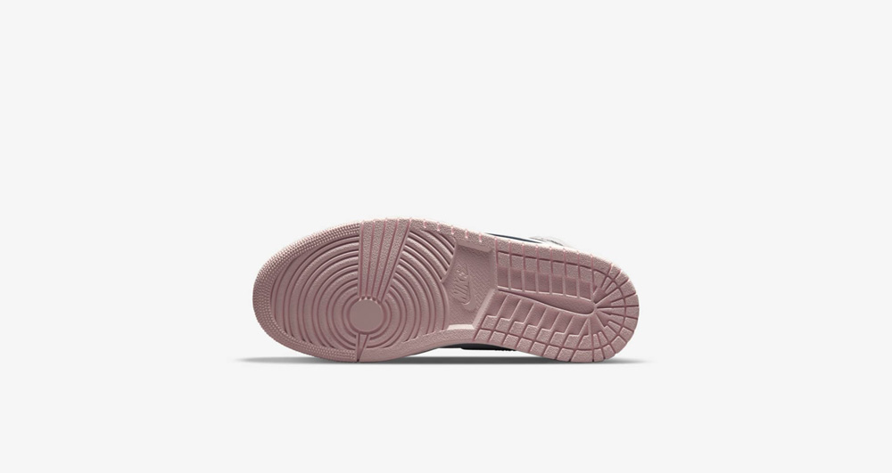 白色中底搭配粉色外底,呼应整双鞋配色,最有意思的细节在于外底上有一块口香糖一般的痕迹,难道是在致敬乔丹嘴里的口香糖?!
