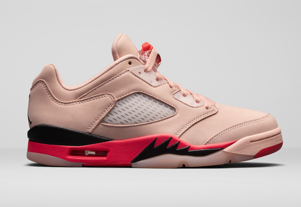 和那双 Air Jordan 6 Low 类似,这双专门为女生打造的 Air Jordan 5 Low GS “Arctic Orange”同样采用粉嫩色系呈现。