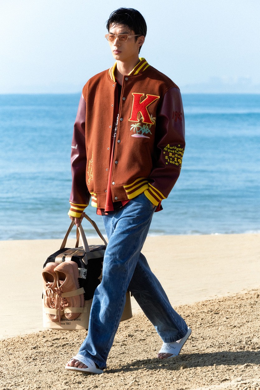 经典棒球夹克以椰树元素和品牌首字母「K」装饰在前胸,带来休闲的海岛风情。