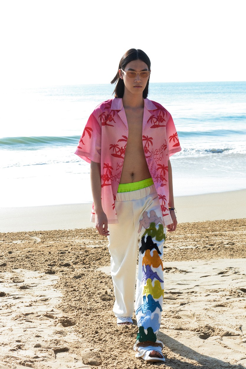 绿、黄、粉等色彩交叠,营造出扎染风格的印花,唤醒 1960 年代的流行记忆与海岛鲜活的热带色彩呼应。