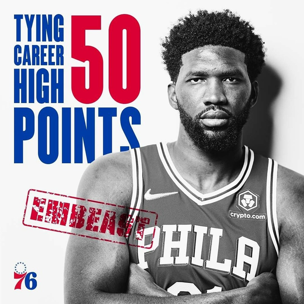 76 人当家球星恩比德突然爆发,连续爆砍 50 分 12 篮板、40 分 13 篮板的炸裂数据,彰显统治力。