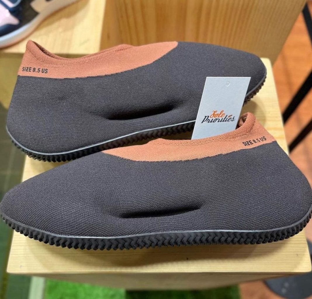 此次全新配色采用大面积灰色针织面料,依旧延续双色拼接设计,鞋领位置点缀棕色,带来熟悉的大地色装扮。