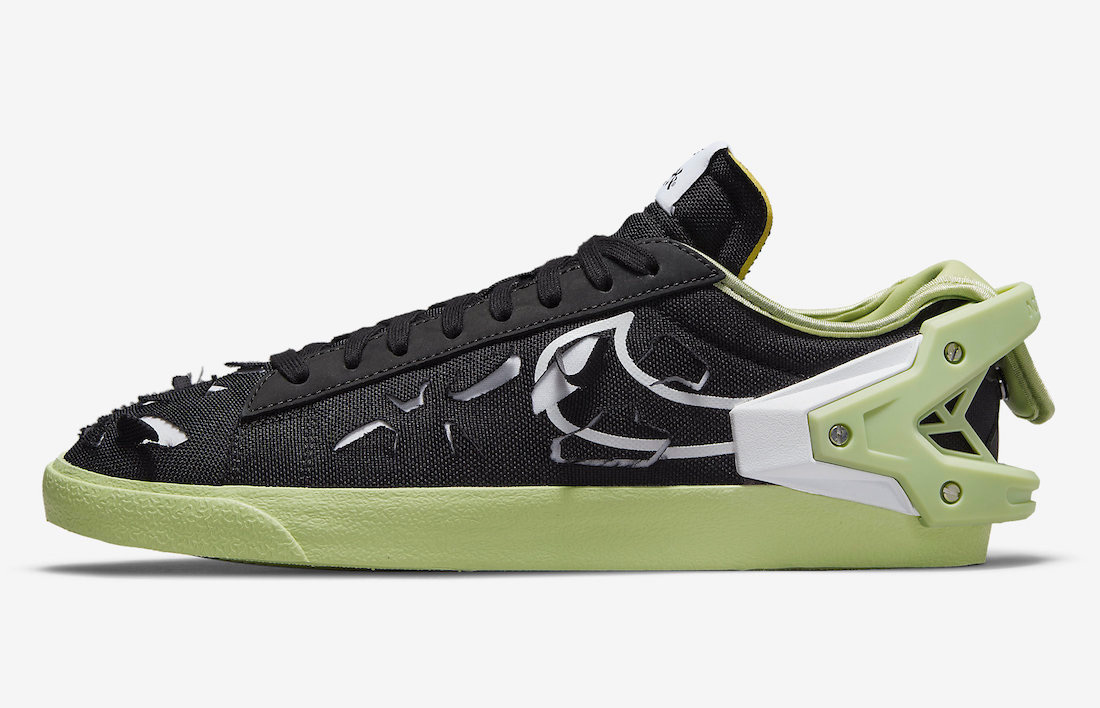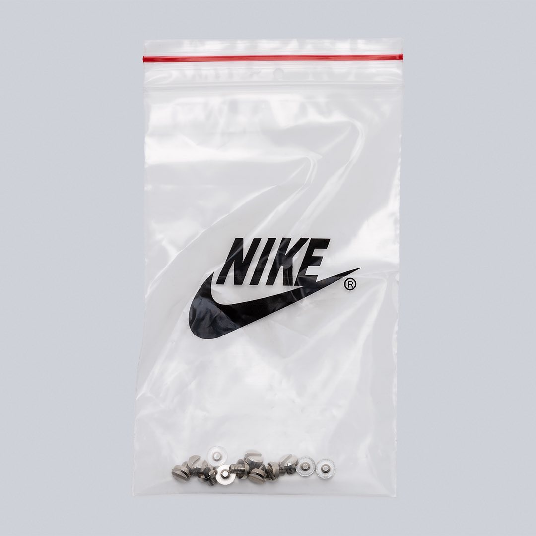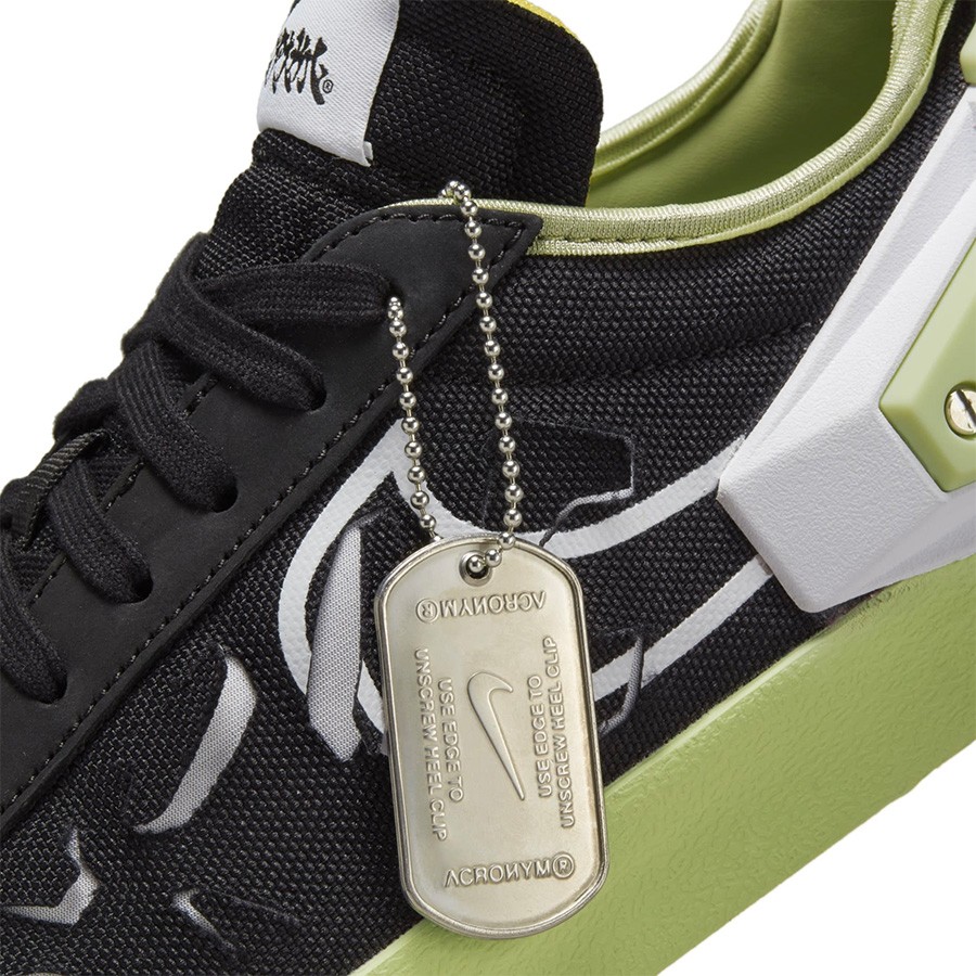 其中联名鞋款 Nike Blazer Low 后跟还额外加入一个可拆卸装置,通过附赠的说明书和配件看,狗牌当作螺丝刀可进行快速替换,无论是可玩性还是设计感都独树一帜。