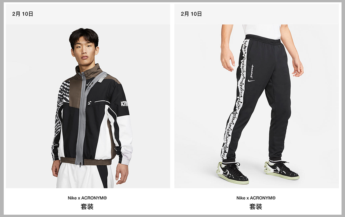 服饰方面则是 Nike 与 ACRONYM® 的首度合作,包含联名夹克、长裤和短袖球衣多个单品。