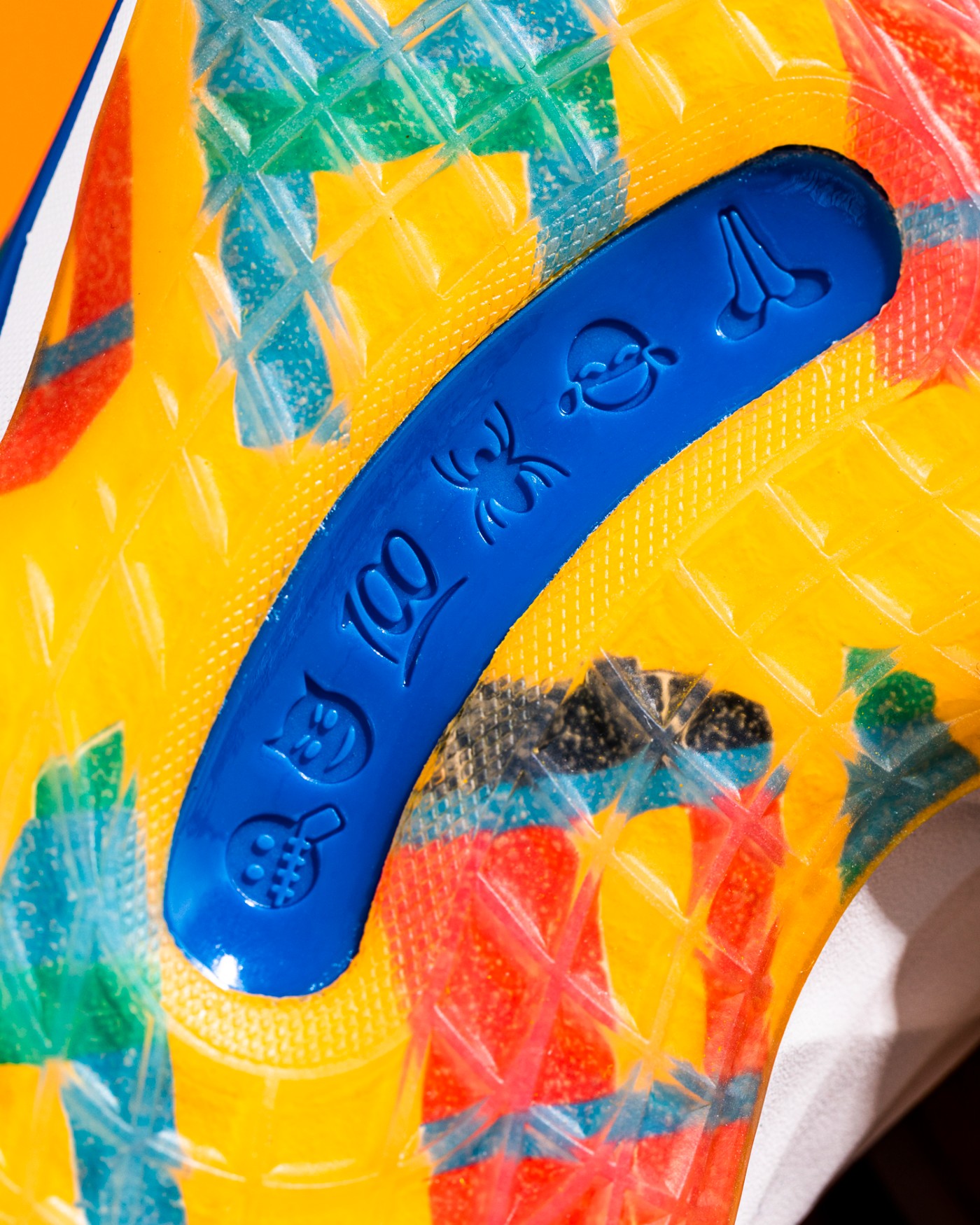 中底内嵌的 TPU 支撑片上印有 6 个 Emoji 表情,组合在一起略显俏皮可爱。
