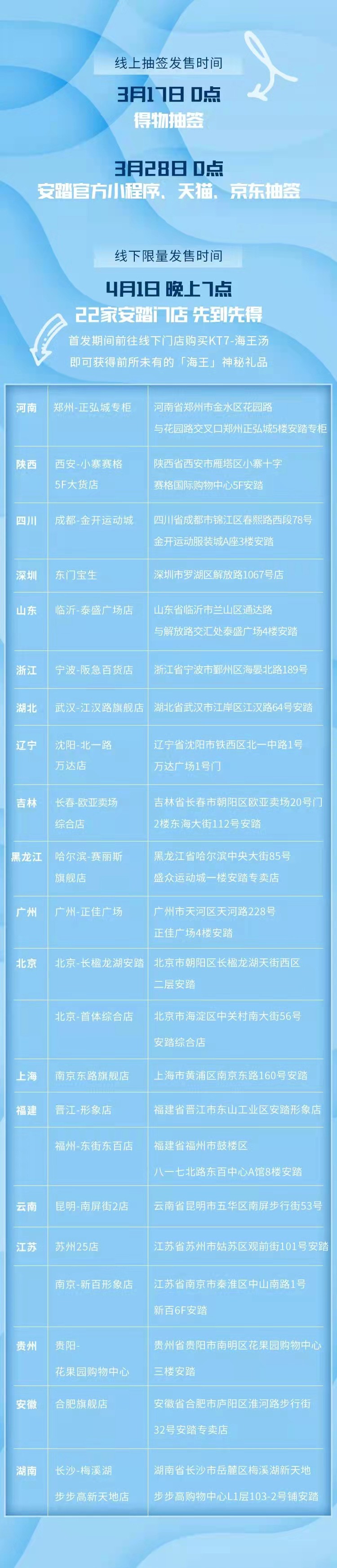 4 月 1 日晚 7 点在全国 22 家安踏门店发售。喜欢的玩家不要错过入手机会。