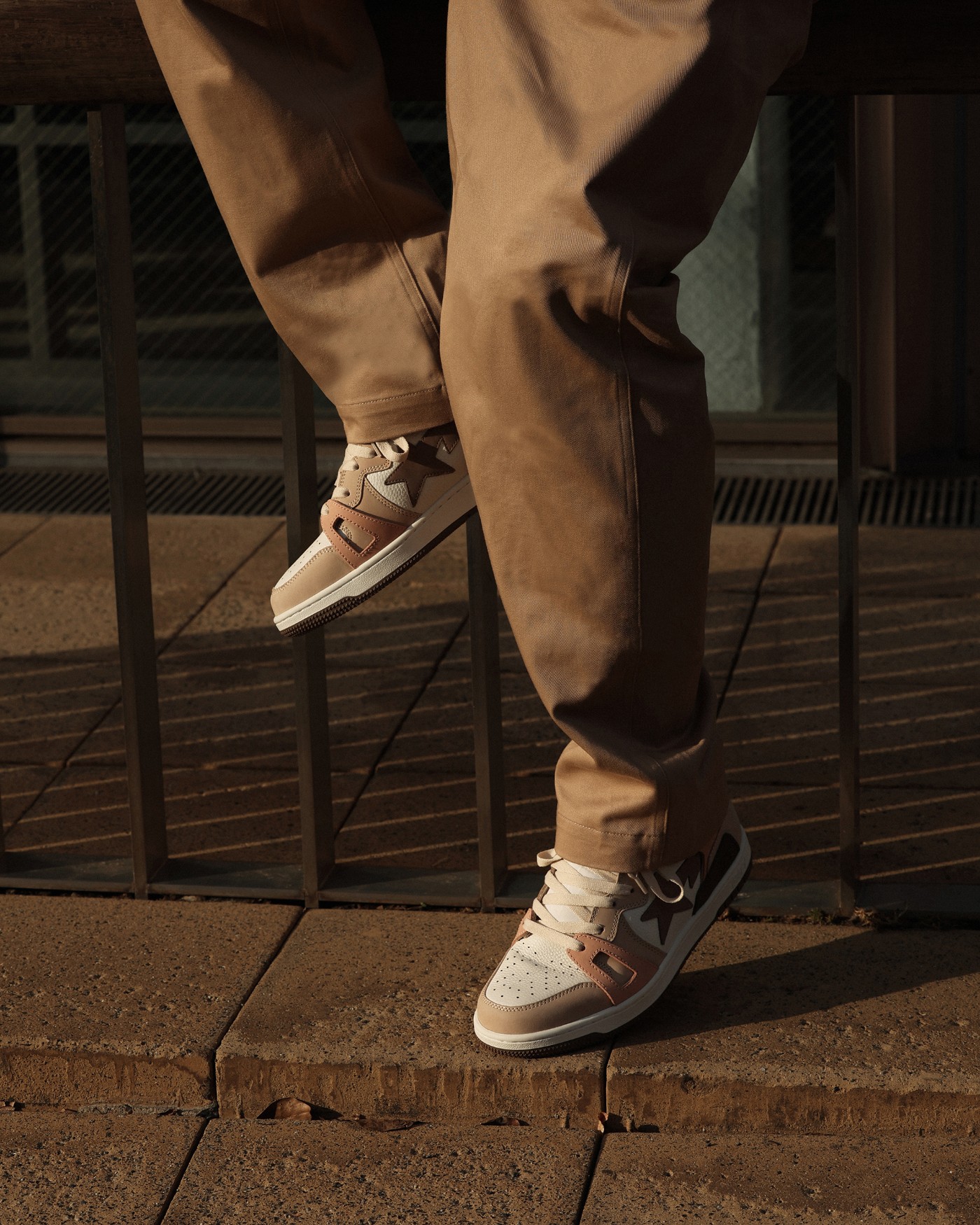鞋头侧面镂空处理和鞋侧标志性的五角星 Logo,沿袭 BAPE STA™ 系列创新风格,为复古鞋型注入街头活力。