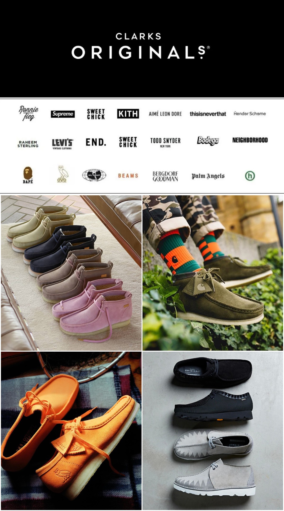 CLARKS ORIGINALs 掀起一轮又一轮潮流旋风的同时,也被街头潮人信奉为永不过时的经典,吸引许多一线大牌抛出橄榄枝争相联名合作。