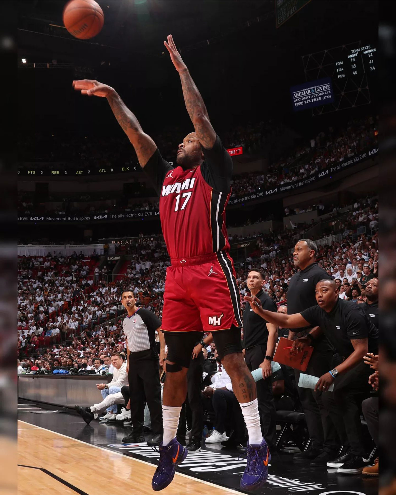 这位 36 岁的老将在系列赛第六场 14 次出手全中,百分之百的命中率也创造了 NBA 最多出手次数的命中率记录。