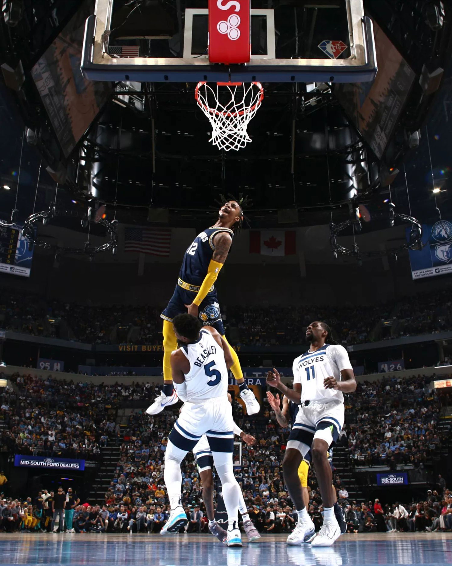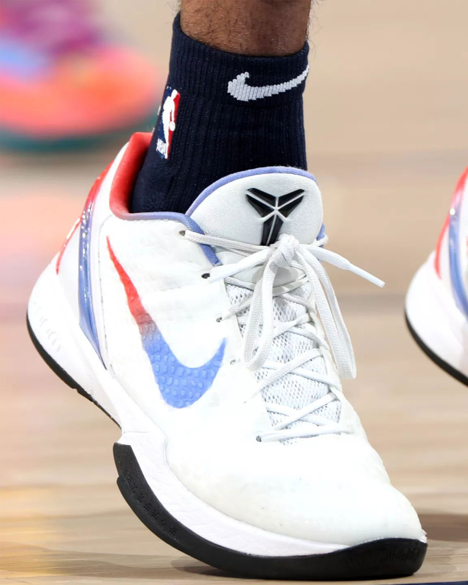 莫兰特选择上脚这双 Nike Kobe 6 Protro 专属 PE,黑白为主的鞋面搭配上红蓝渐变的 Nike Swoosh 属实挺帅, 现在卢卡、胖虎和吹羊都有了自己的签名鞋,不知道莫兰特的签名鞋是不是也快和我们见面了。