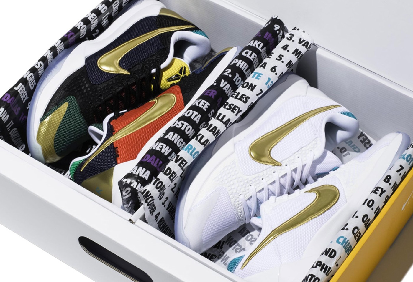 一款 DIRTY DOZEN 以当年未选择科比的 12 支球队为灵感,鸳鸯呈现。另外一款 UNLUCKY 13 则是选中科比的夏洛特黄蜂配色。