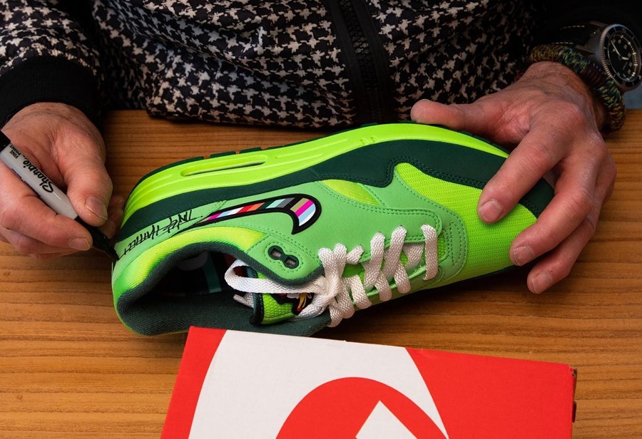 最近亲签了一批 Air Max 1,不是别的,正是今年 2 月曝光的「俄勒冈」Air Max 1!