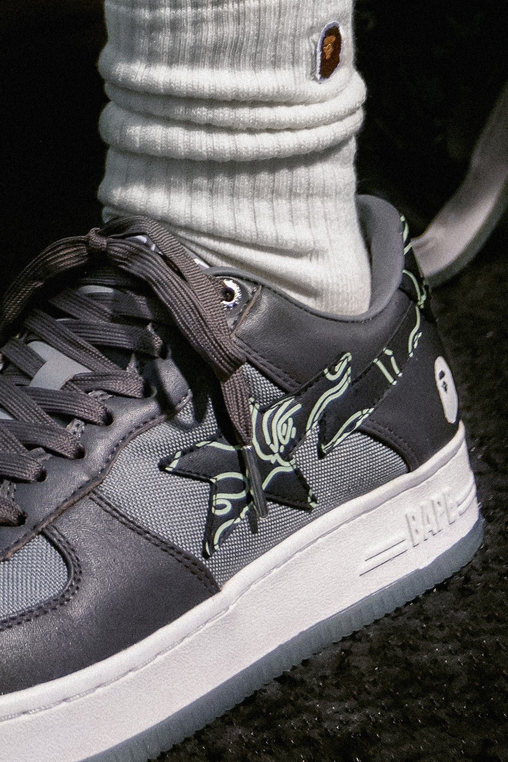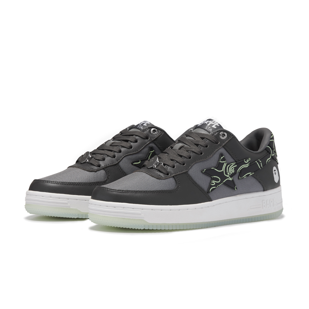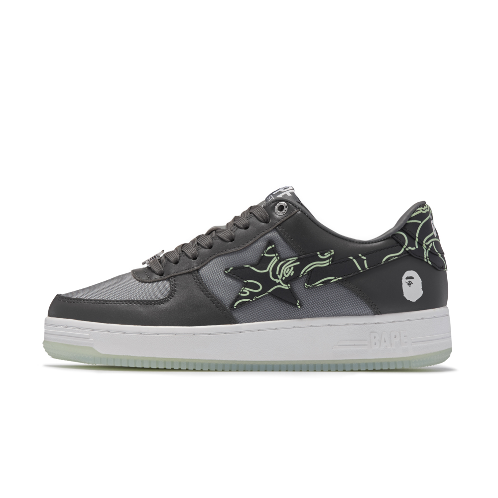 两款鞋以低调百搭的黑、灰配色装扮,一改 BAPE STA™ 艳丽大胆的彩色设计,适合日常搭配。