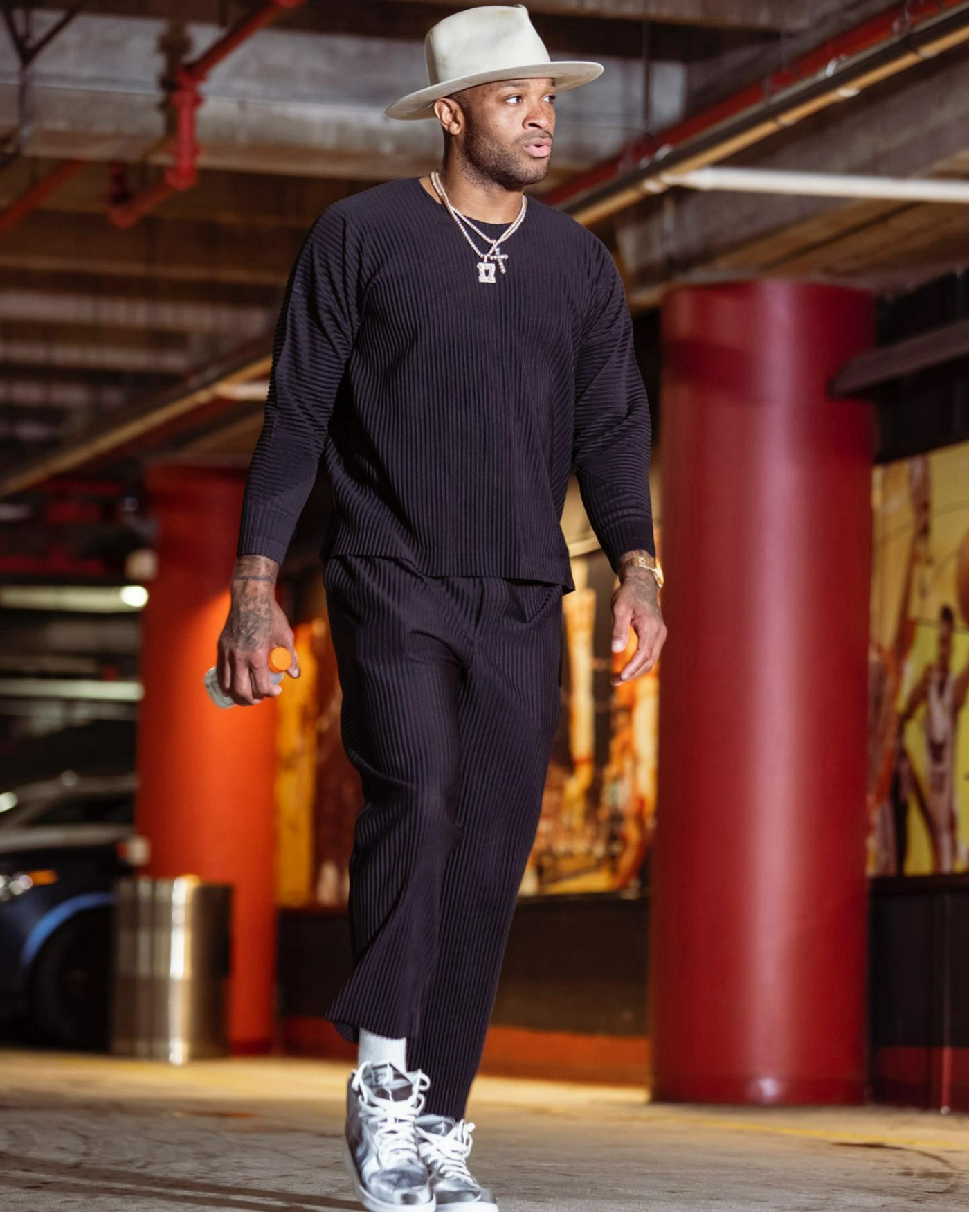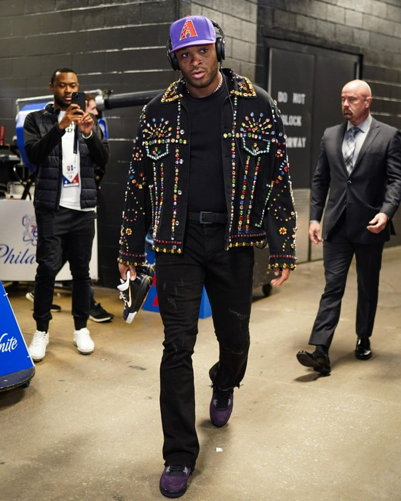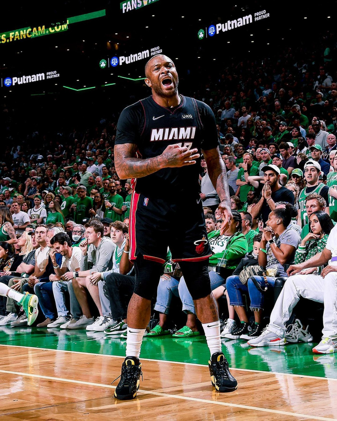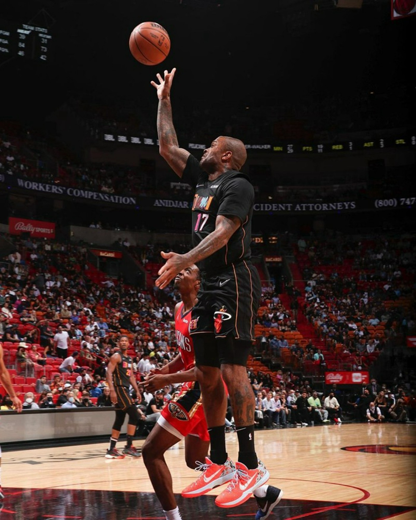 但有一说一,以 Air Jordan 9 的脚感,拿来打 NBA 属实有点 “废脚”,可能塔克往里面塞了自己定制的鞋垫吧!