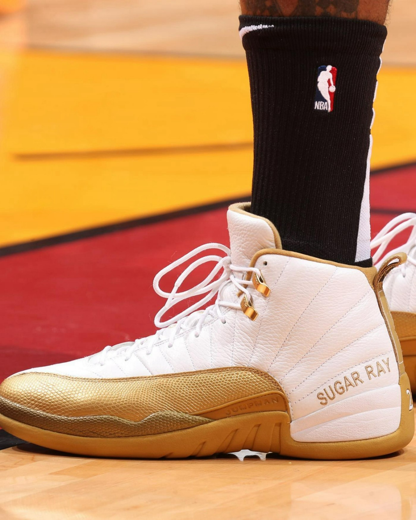 这双 Air Jordan 12 “雷·阿伦” PE 也是塔克收藏的其中之一,市面上几乎找不到。