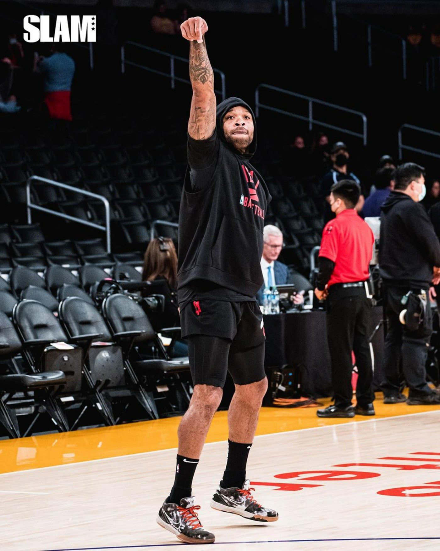不难看出,塔克其实和很多现在 NBA 中的球员一样,非常钟爱科比系列的鞋款。