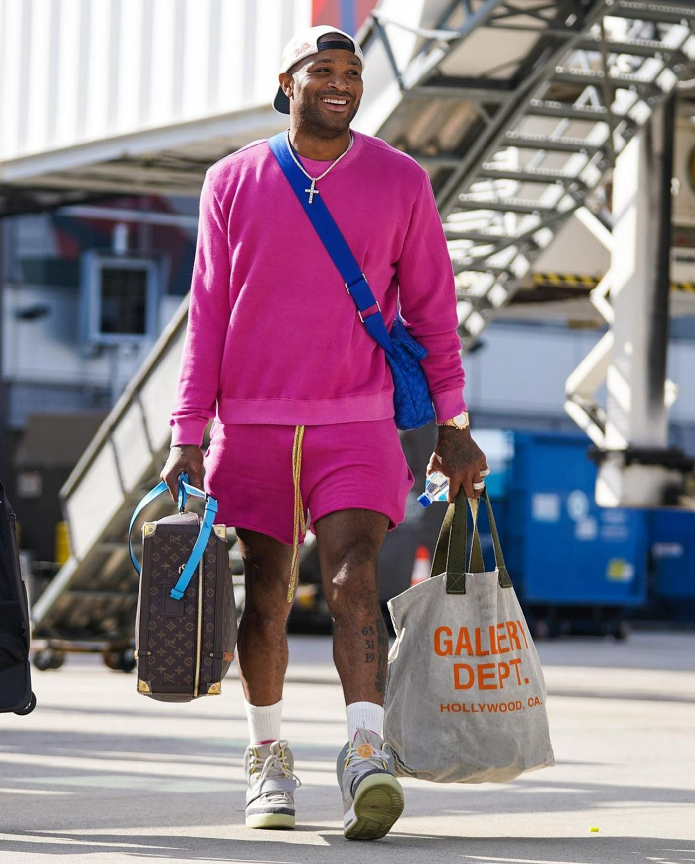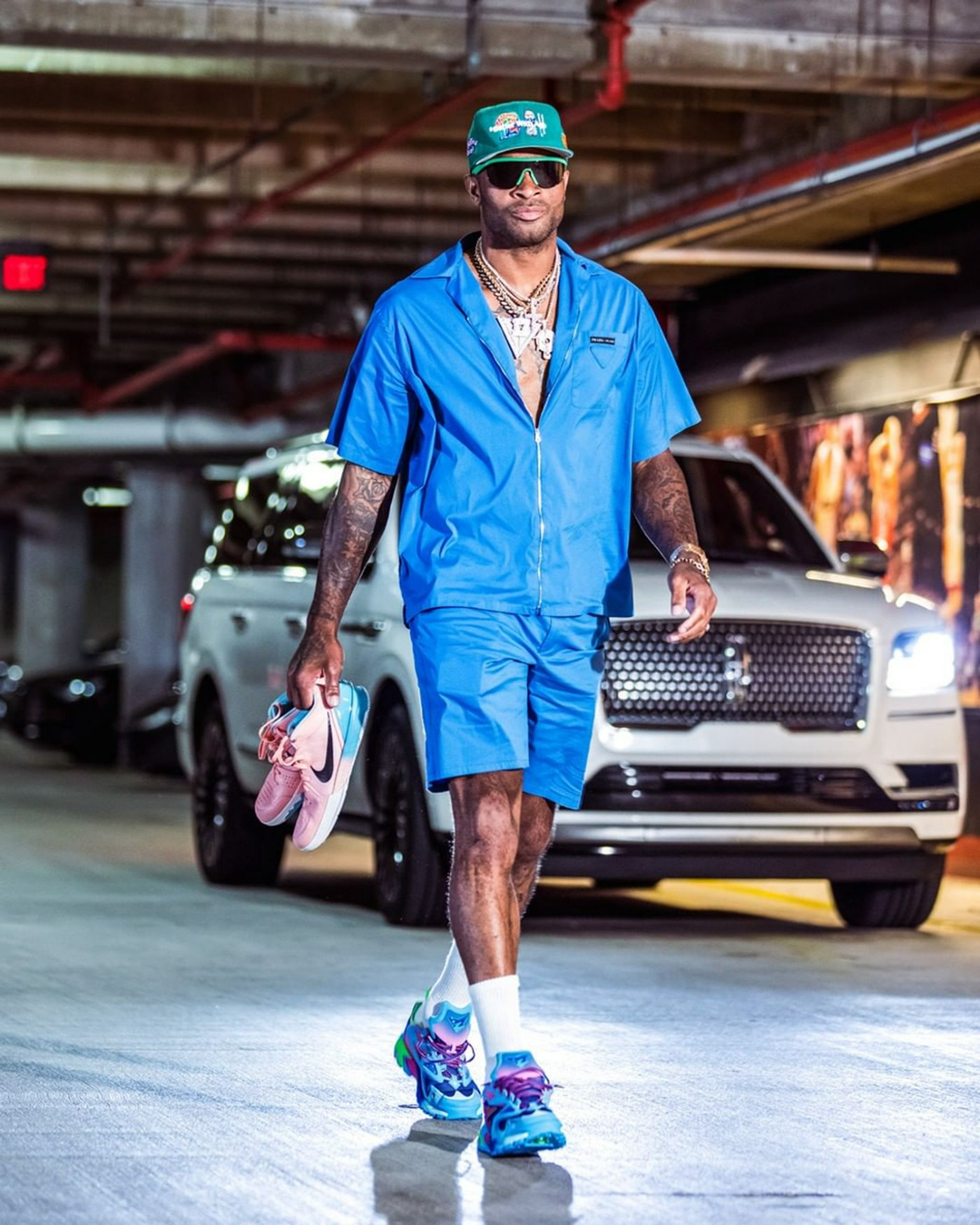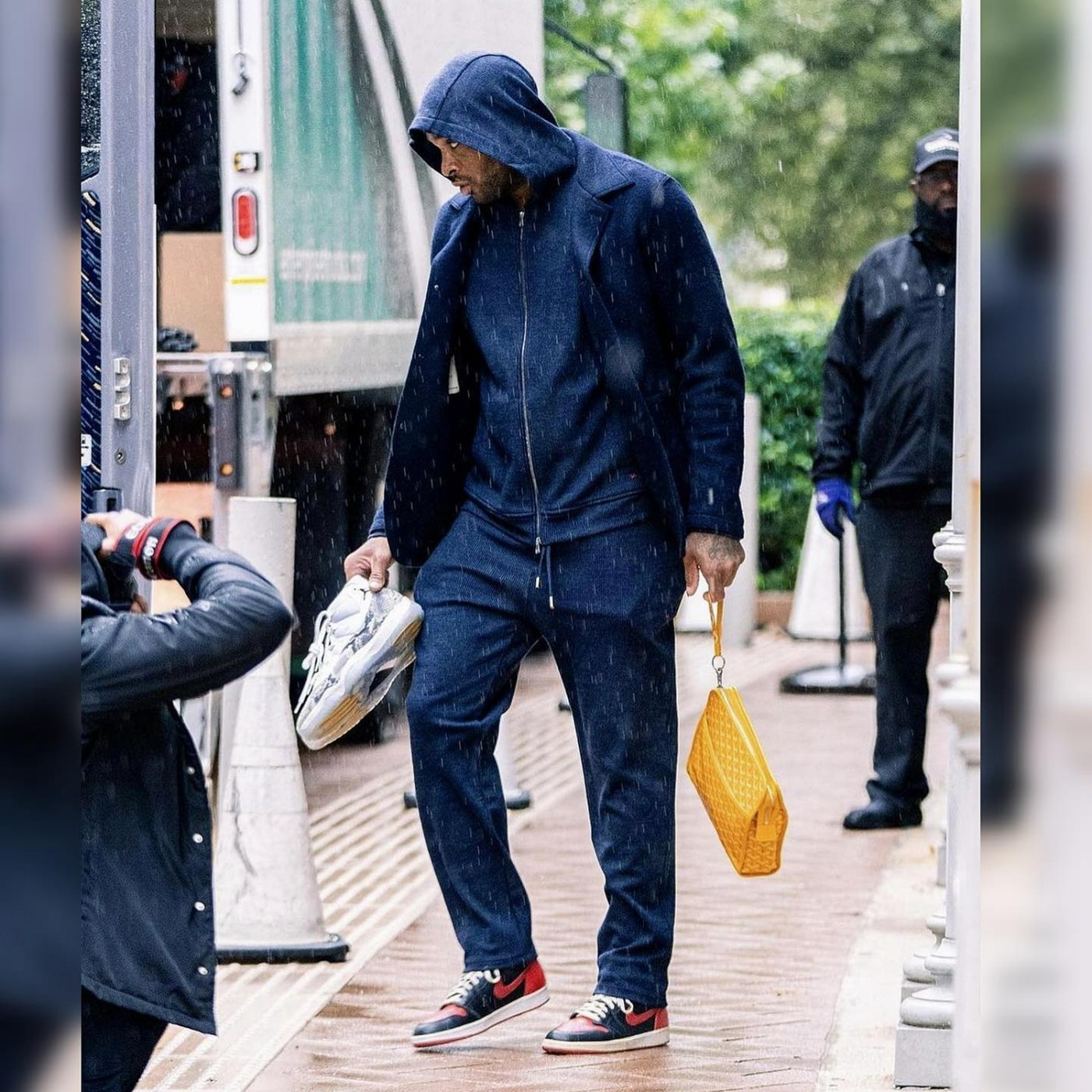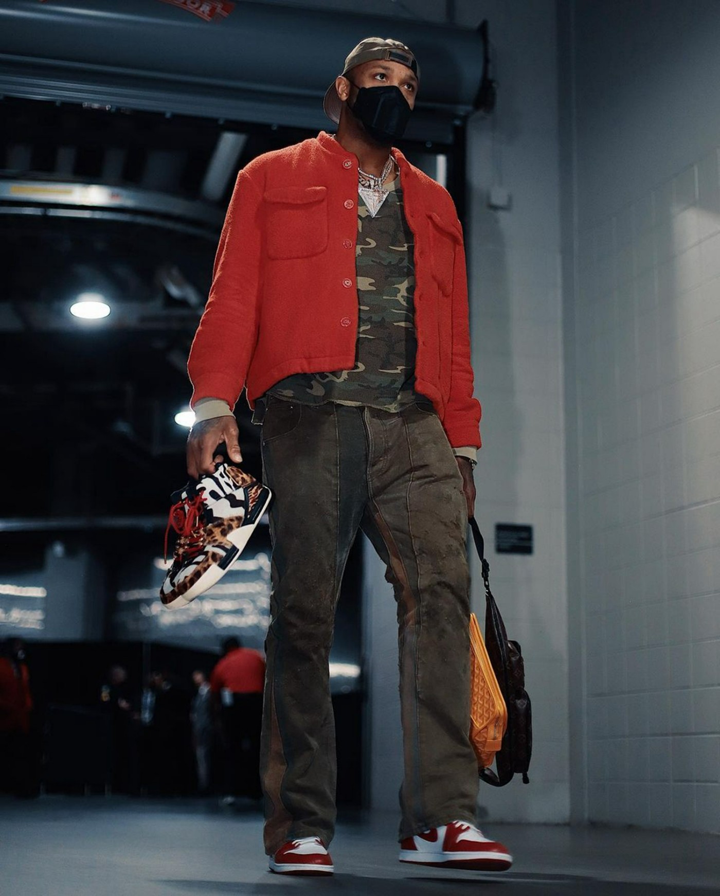 相比之下,脚上的 Air Jordan 1 “禁穿” 就显得颇为 “寒酸”了,甚至塔克都把它当雨鞋穿,丝毫不心疼。