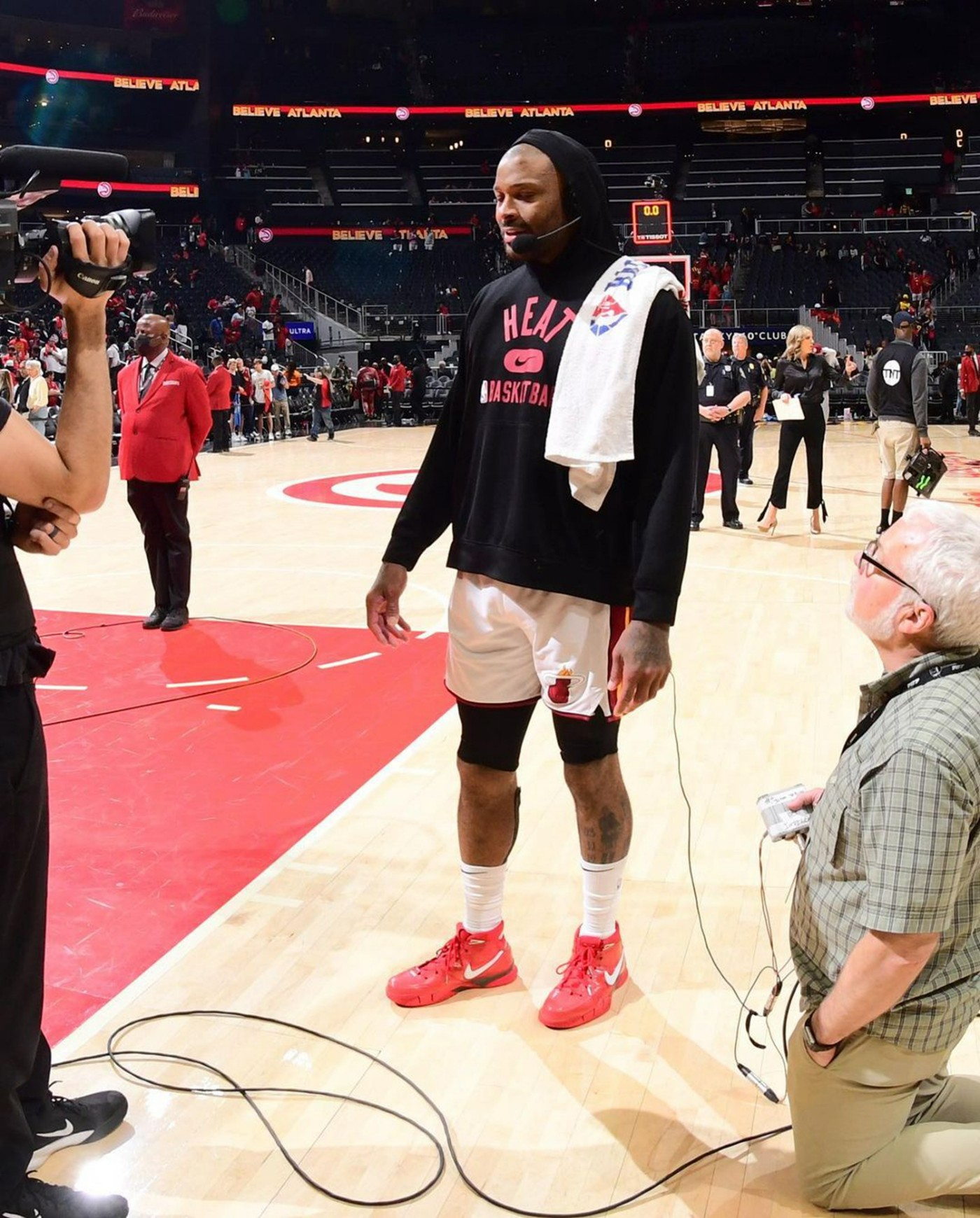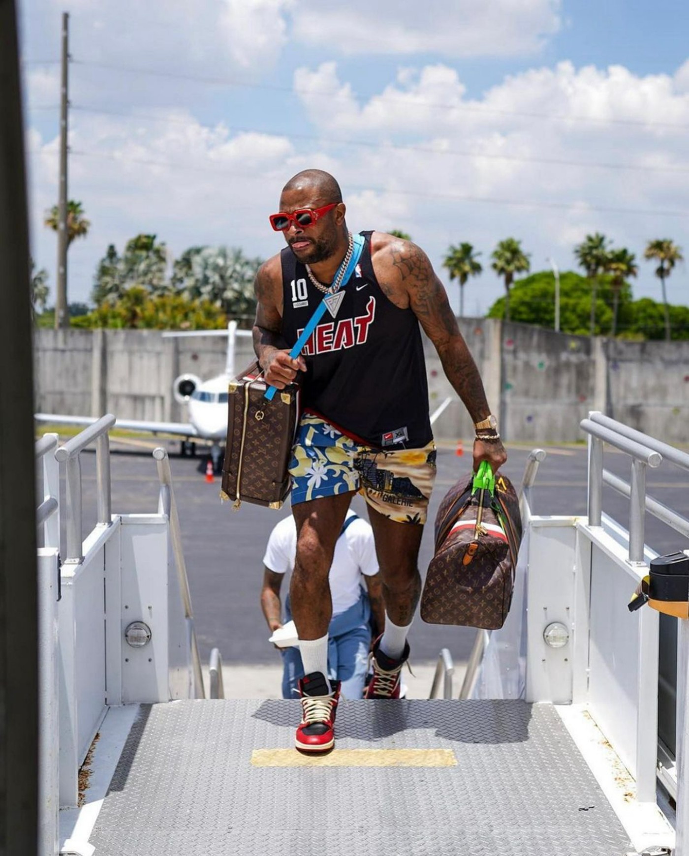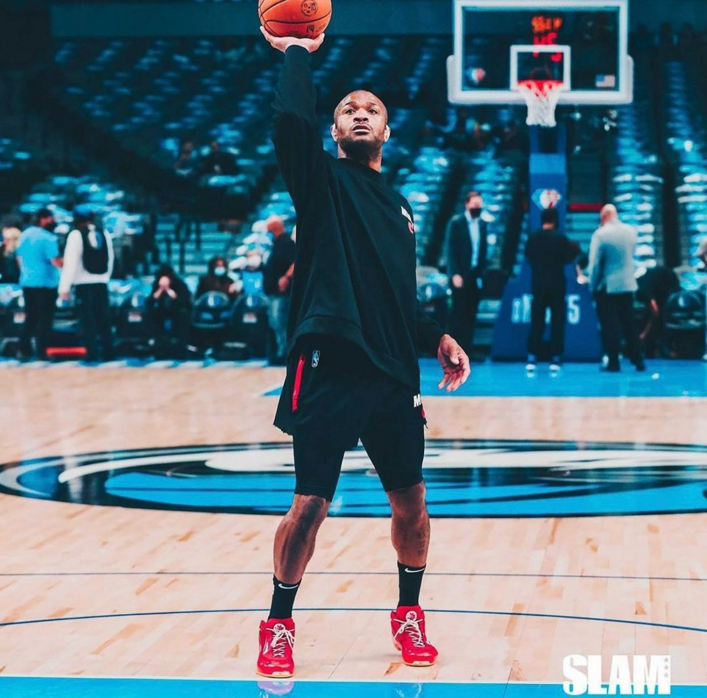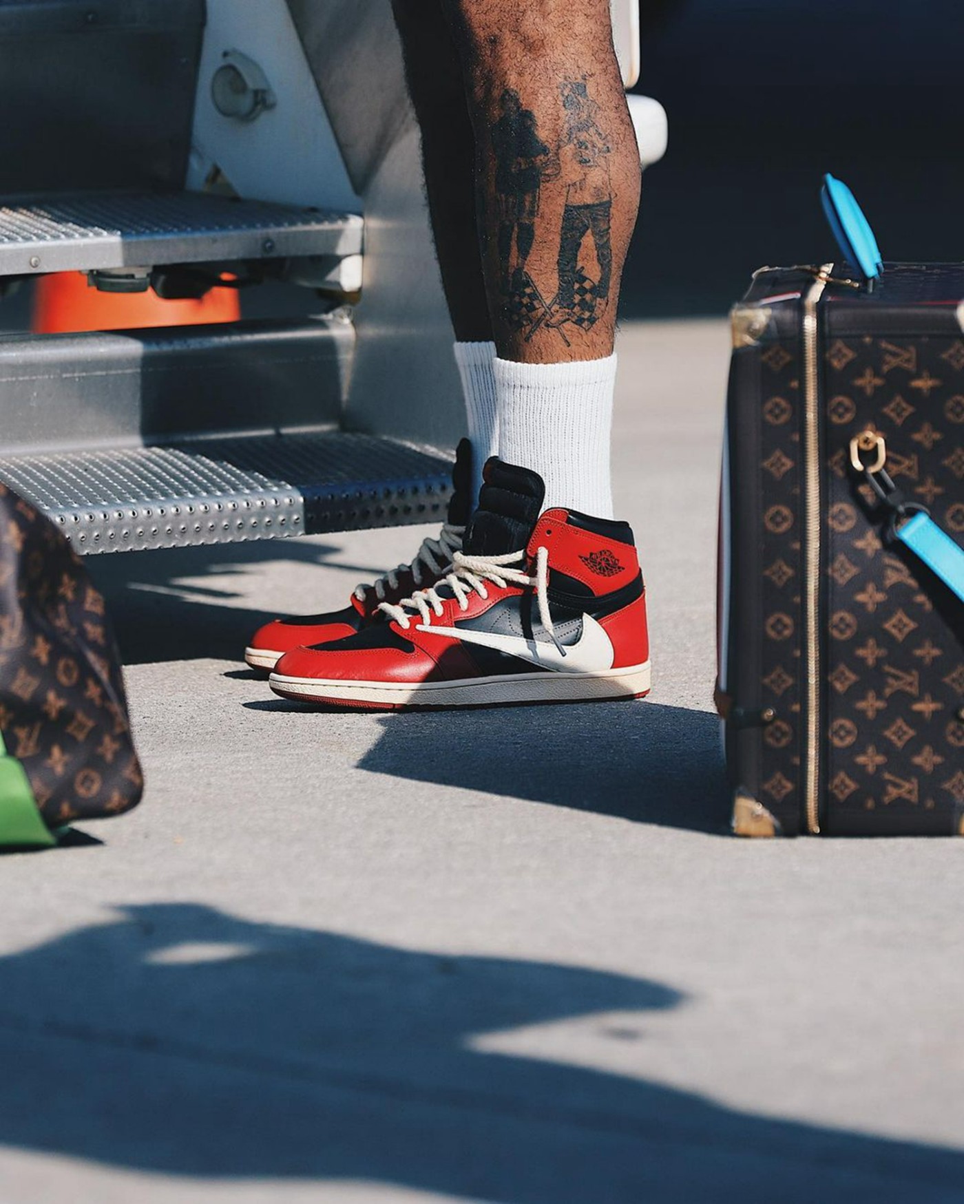 热火在开启客场之旅前,摄影师拍到塔克上脚了一双此前从未见过的倒钩 Travis Scott x Air Jordan 1,让许多玩家都误以为是全新配色。