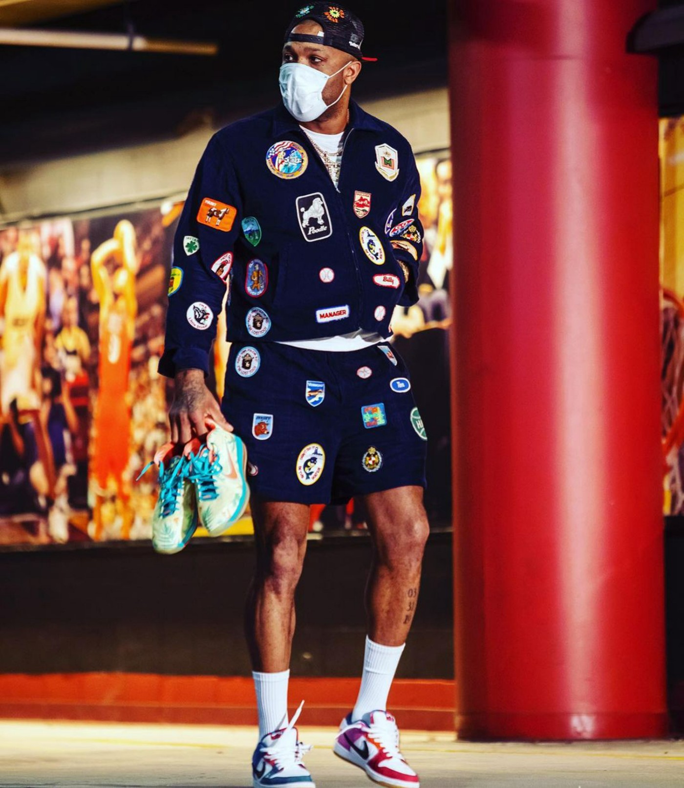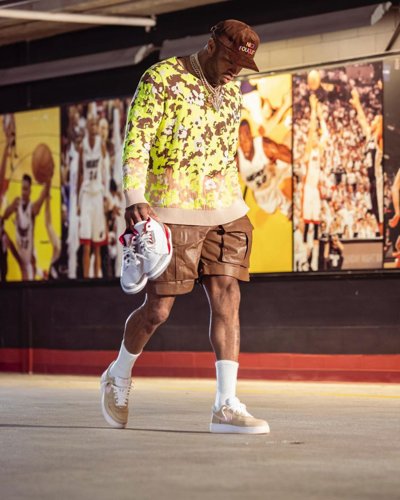而脚下的 Air Jordan 3 “Drake vs Lil Wayne”可大有来头,是专门为 Drake 和 Lil Wayne 的巡回演唱会「Drake vs Lil Wayne」所打造的 PE 配色,仅仅作为亲友限定推出。