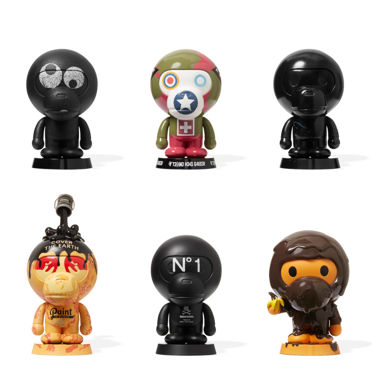 如今时隔 4 年,BAPE® 联手美国知名潮流店铺 BAIT 将这 10 款形态各异的 BABY MILO® 雕塑首次以 8 英寸微缩公仔的形式带回,也让玩家终于有了将它们收入囊中的机会。