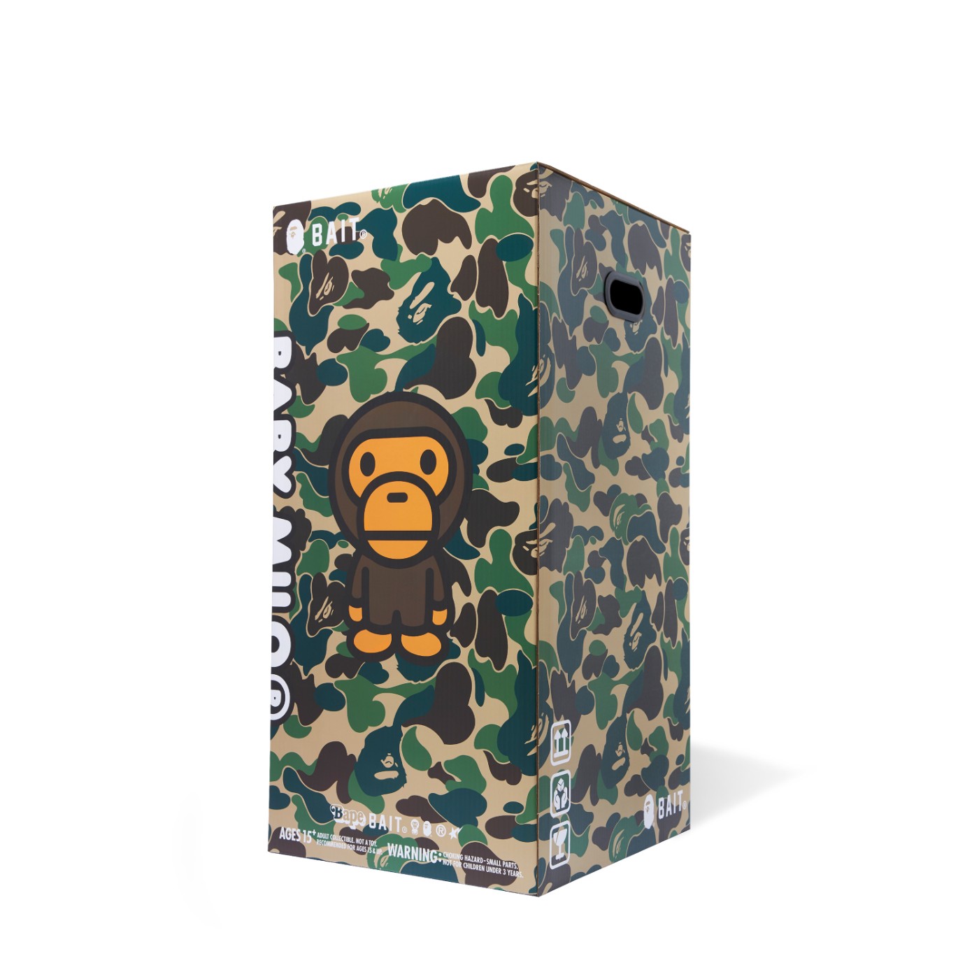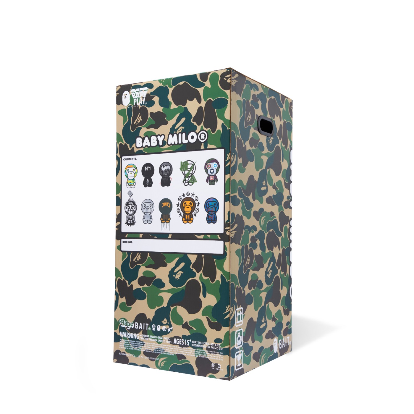 包装盒上均印有 BAPE® 标志性迷彩花纹。
