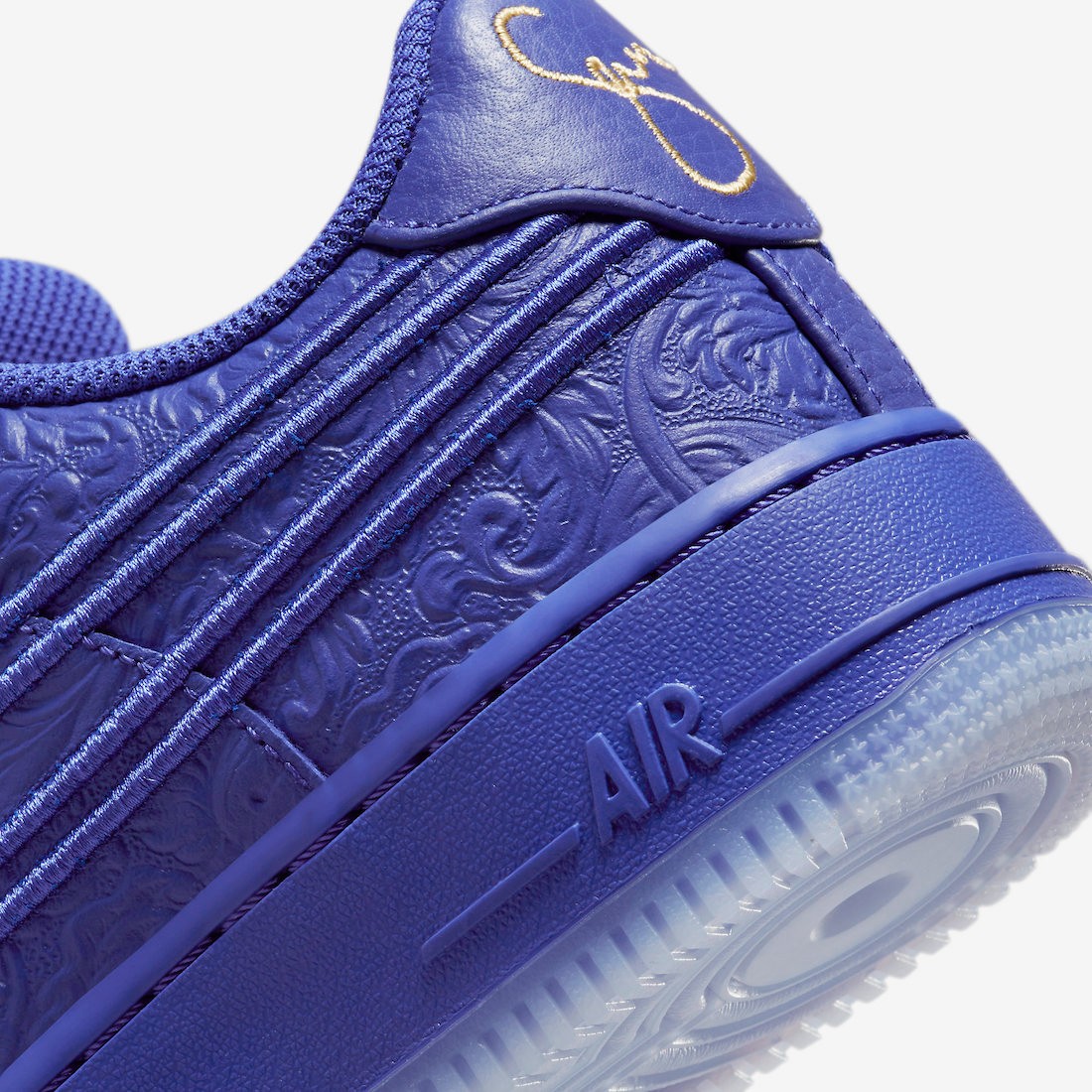 通体皇家蓝装扮,细节注入花卉纹理,与鞋垫图案相呼应,相比此前白金版本更为精致。