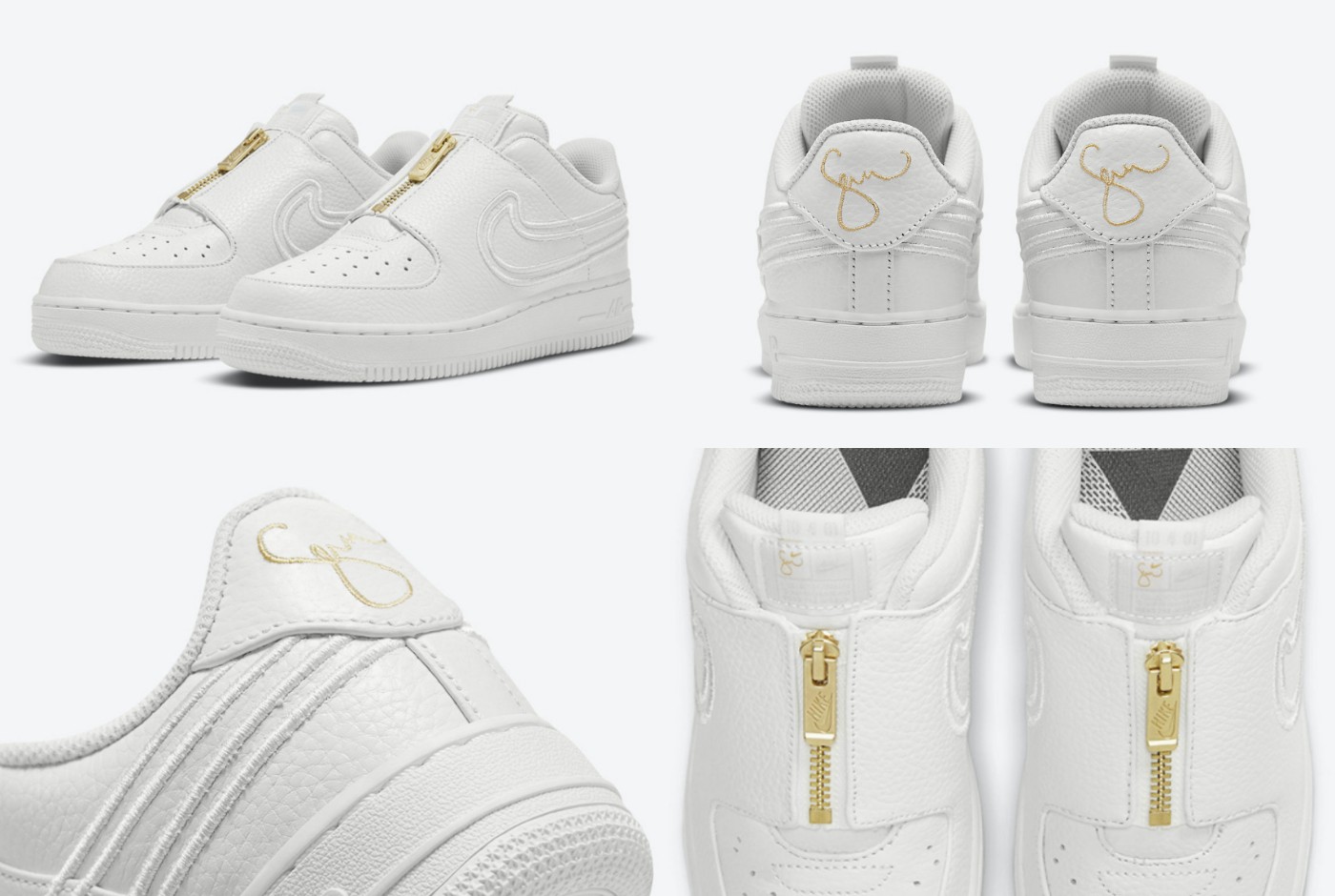 鞋身采用经典 Air Force 1 Low 为基础,鞋带部分改为金色拉链设计,散发更具时尚气息的设计语言。