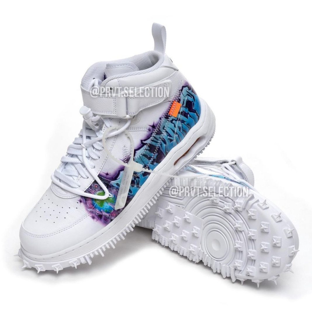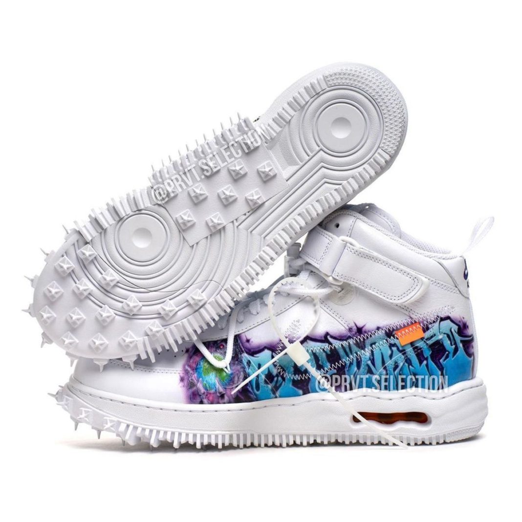 近日,一双特殊「Graffiti」配色的 OFF-WHITE x Nike Air Force 1 Mid 释出实物。